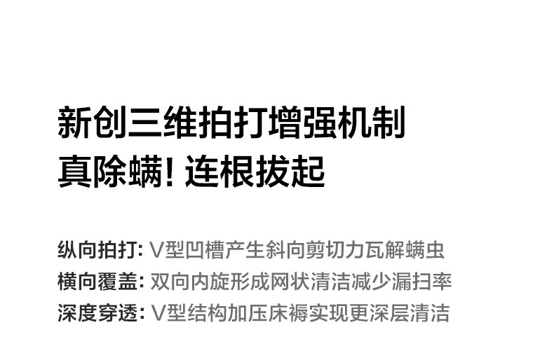 | Mite Removal Method | Hotwind,High Frequency Beating,Ultraviolet Rays,Ultrasonic,Dust Mite Sensor,Suction Power |