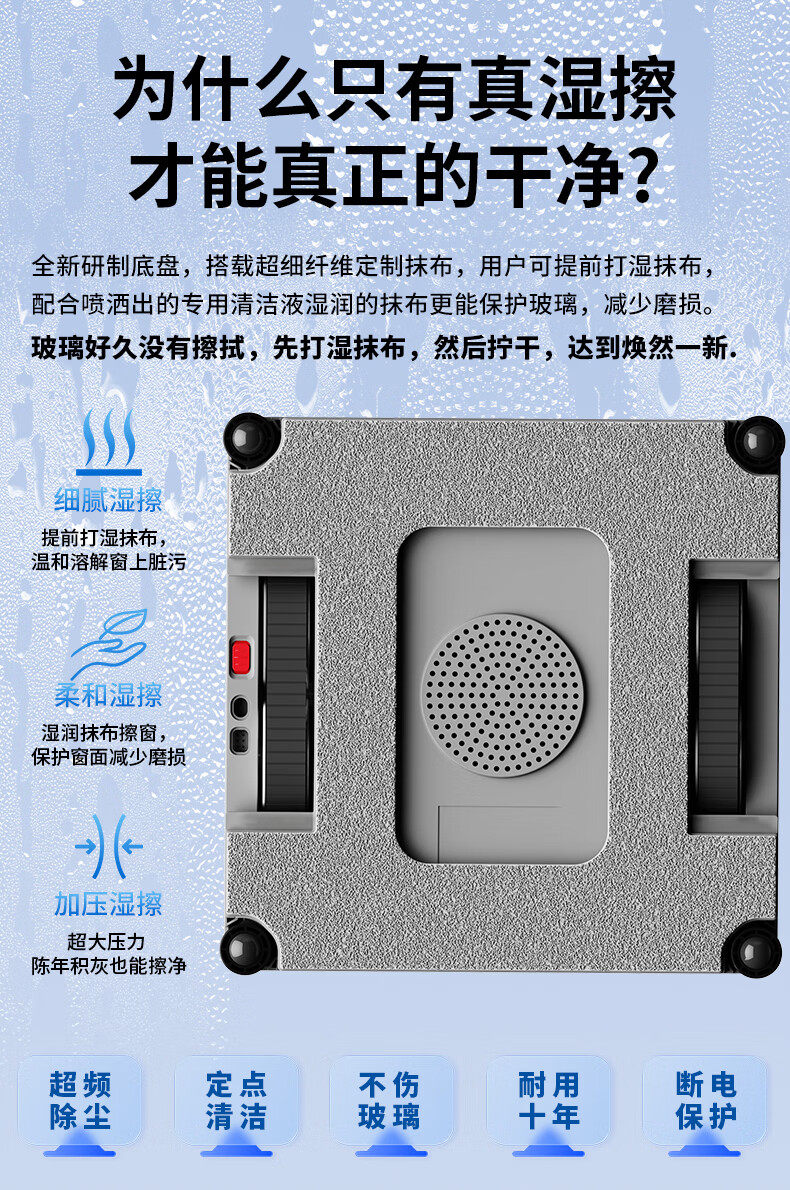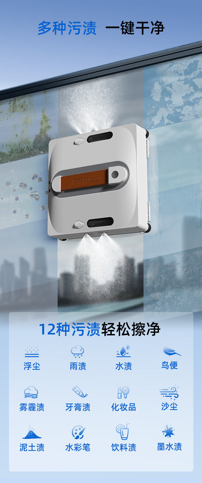 Fully Automatic Two-Way Water Spray Window Cleaning Robot for Home Use, Remote-Controlled Electric High-Rise Cleaning and Glass Scrubbing Device