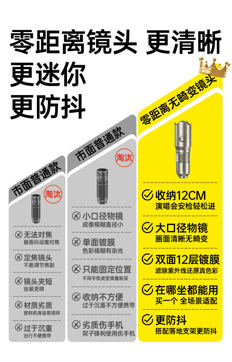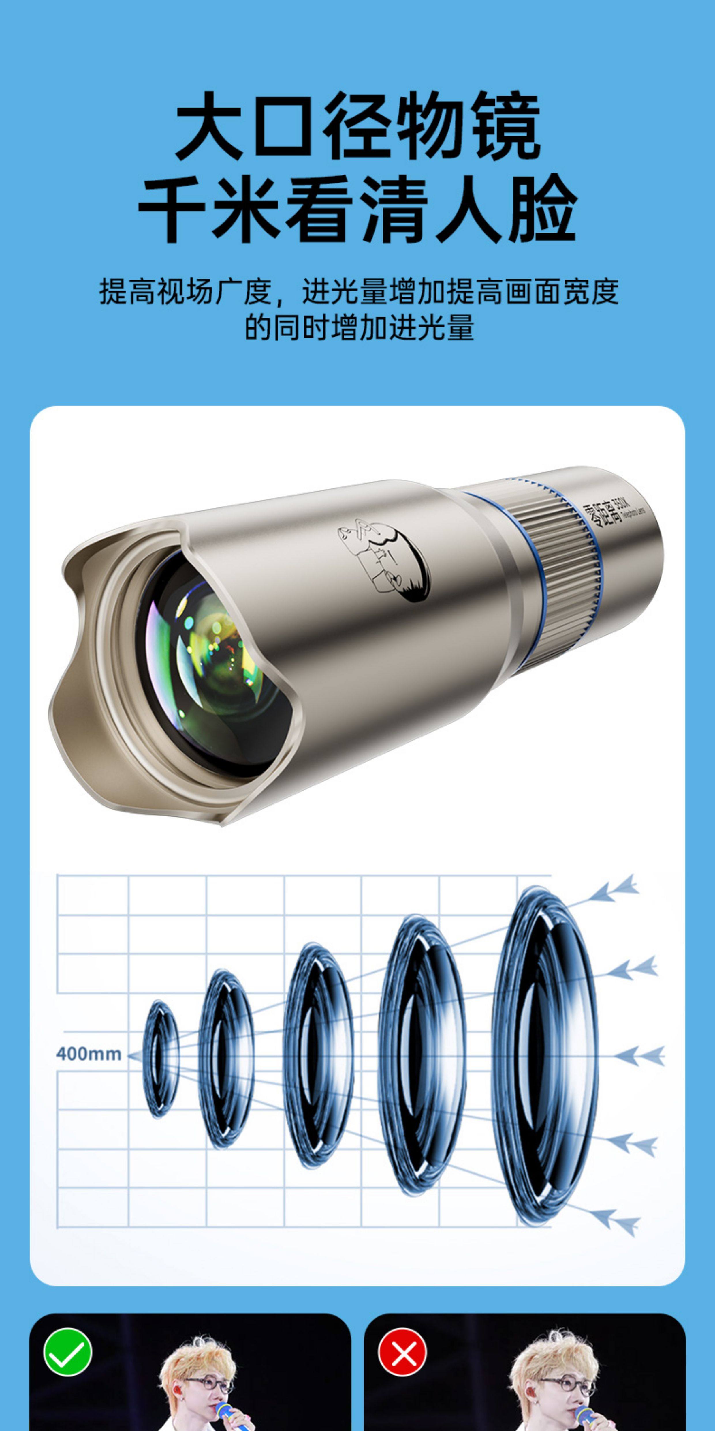 [Essential Mini Concert Gadget]Xiaoxin Phone Telephoto Lens Telescope for Concerts, High Magnification for Apple 15 Pro Photography, Portable Anti-Shake External Camera for 14