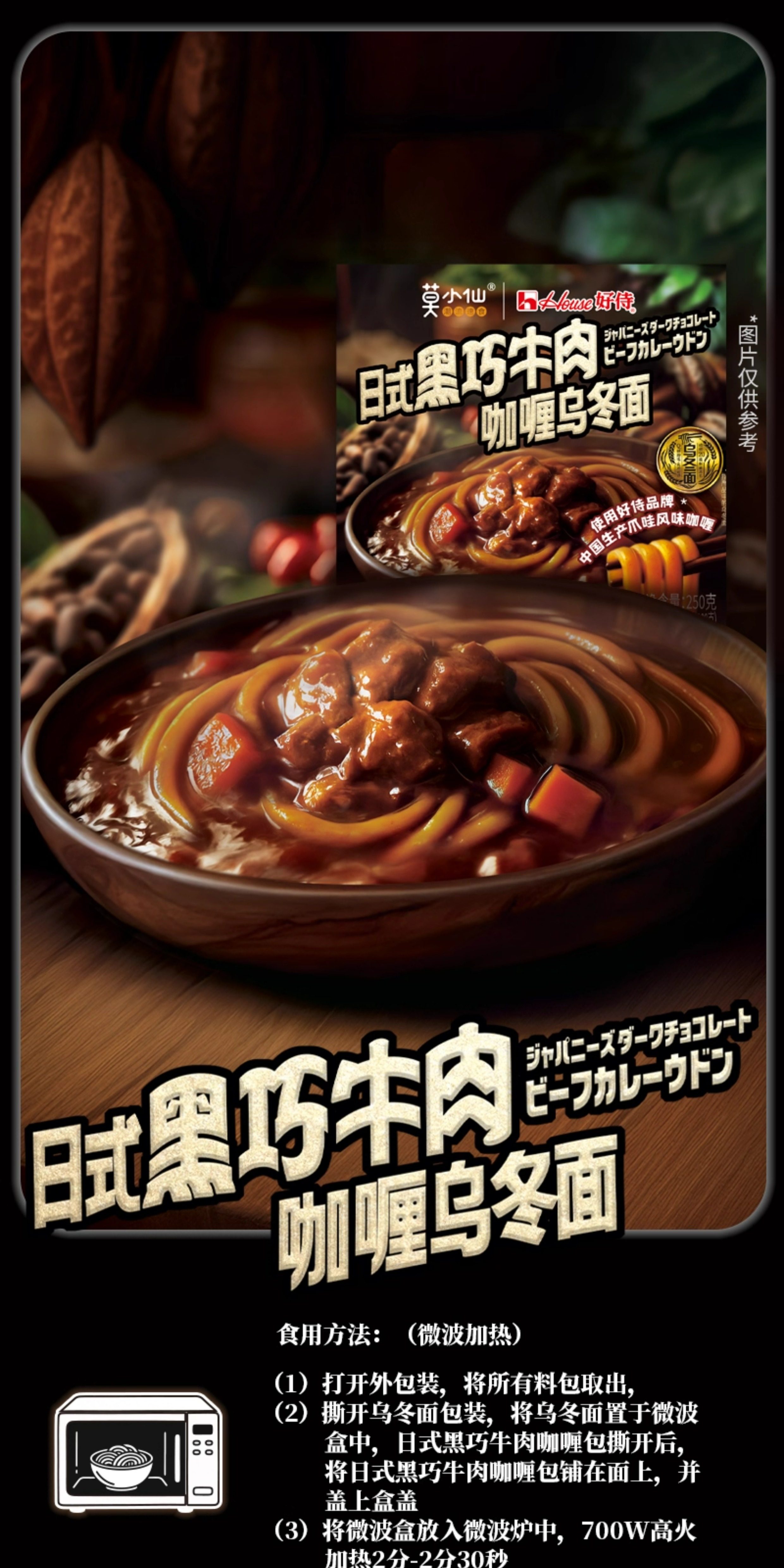 Mo Xiaoxian and Haoshili Co-Branded Curry Udon Noodles, Japanese-Style Chicken, Black Chocolate, Beef, Instant Food, Microwaveable