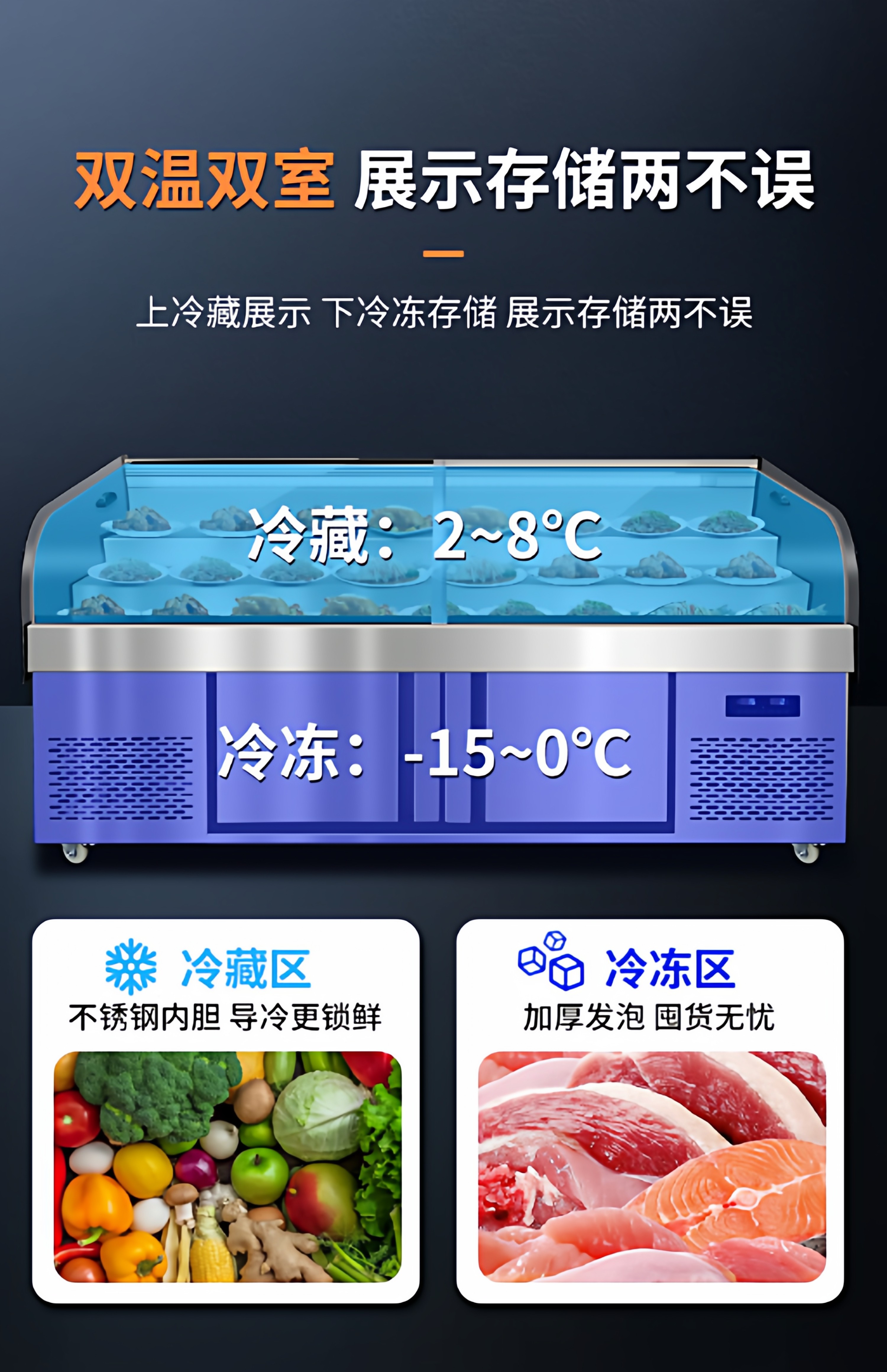 Yangzi Commercial Ordering Display Cabinet with Dual Temperature and Dual Control, Refrigerated Fresh-Keeping Cabinet for Barbecue Restaurants, Seafood, Cold Dishes, and Food Presentation