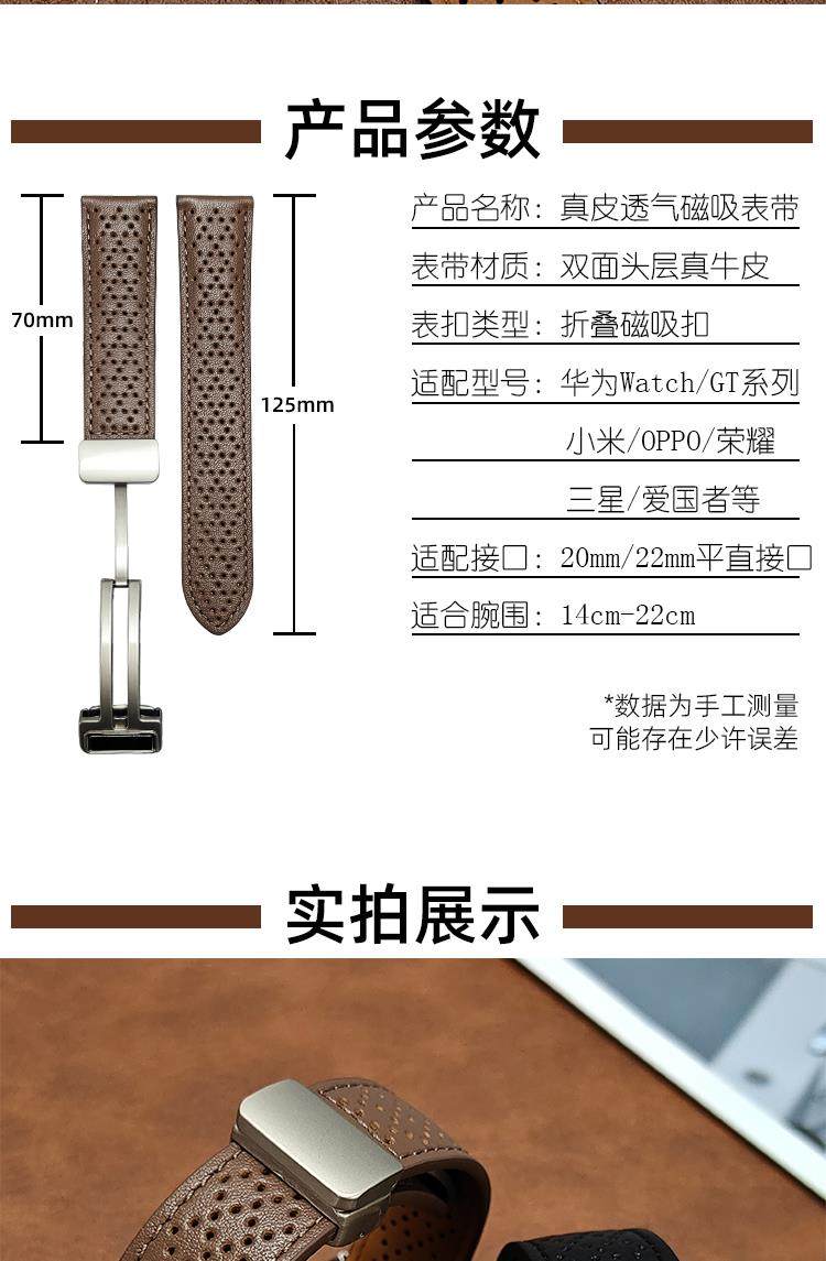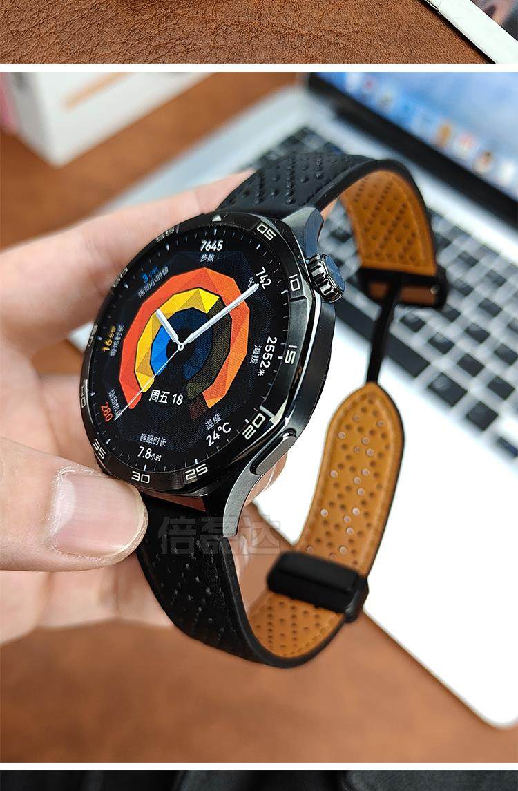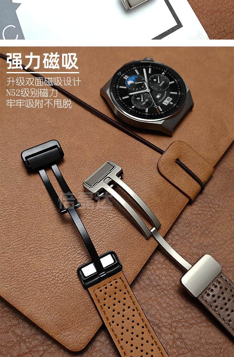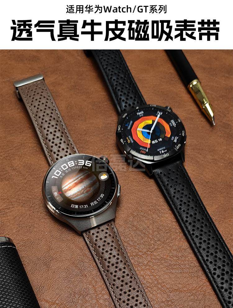 Suitable for Huawei Watch4Pro Watch Strap, Genuine Leather Gt6Gt5Pro Breathable Belt, Magnetic New Model Gt4Gt3 Wristband