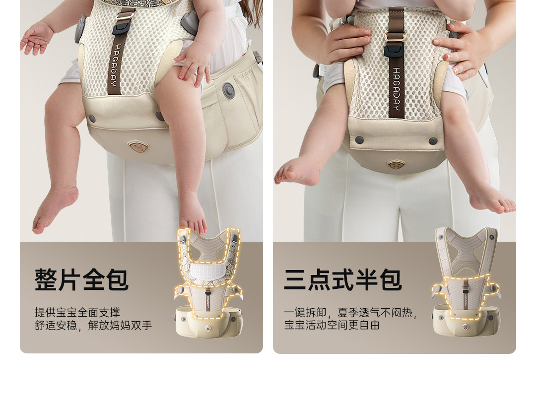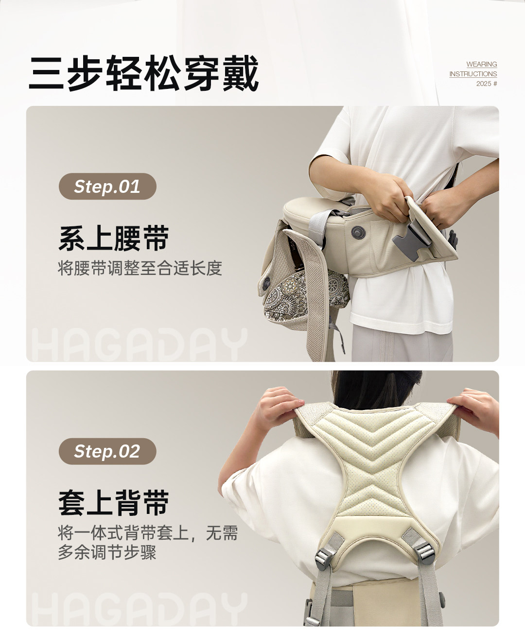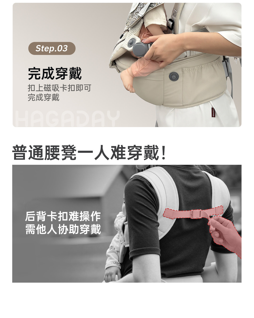 Hagaday Hakada Baby Waist Stool and Carrier 2-in-1, Lightweight for Toddlers, Suitable for All Seasons, a Baby-Carrying Tool for Outings