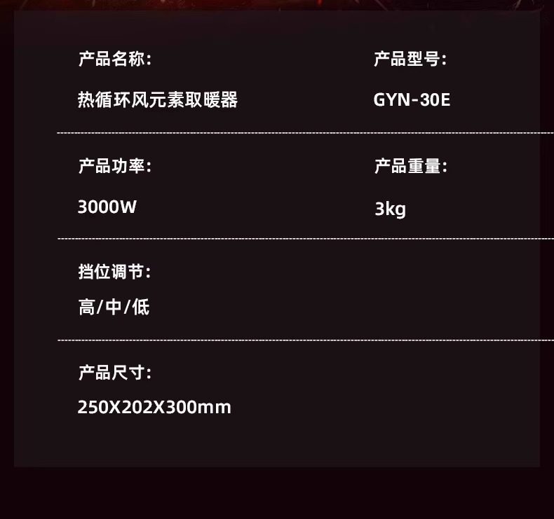 | Maximum Power of Electric Heater | 3000W |