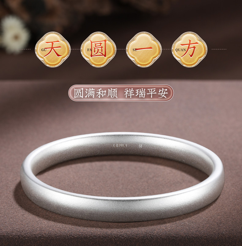 Yinyifang Silver Bracelet with Silverfish Pattern, Plain Ring, Traditional Closed Style, 2025 New Model, Chinese Style Silver Bracelet, 9999 Pure Silver Jewelry