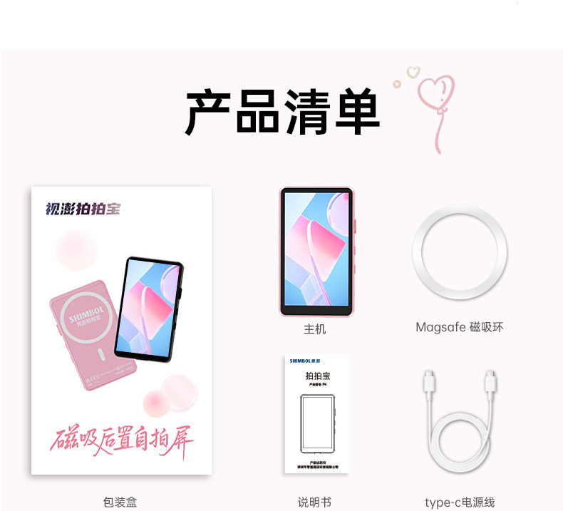 Shimbol P4 Mobile Phone Selfie Display Touch Screen Zoom Magnetic Selfie Screen Auxiliary Photography Screen Mirroring Device Rear Selfie Tool Compatible with Apple and Android Instant Camera