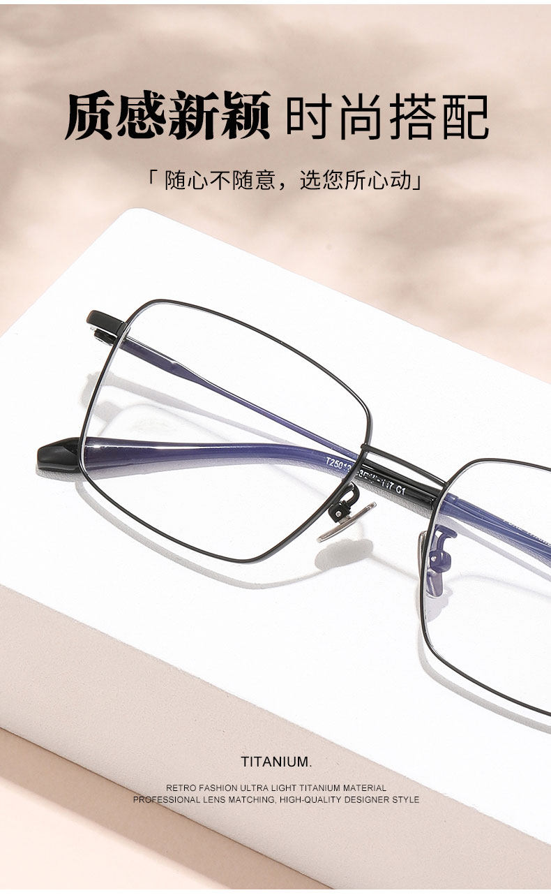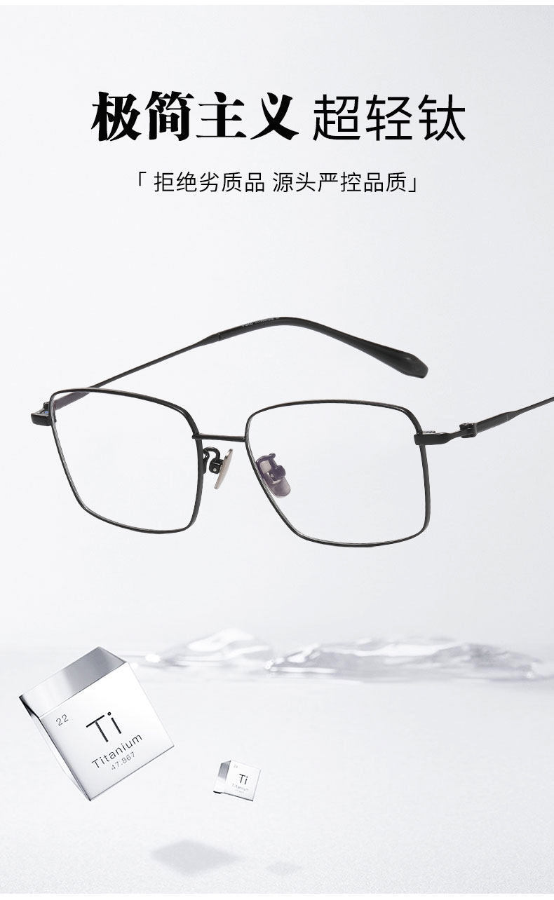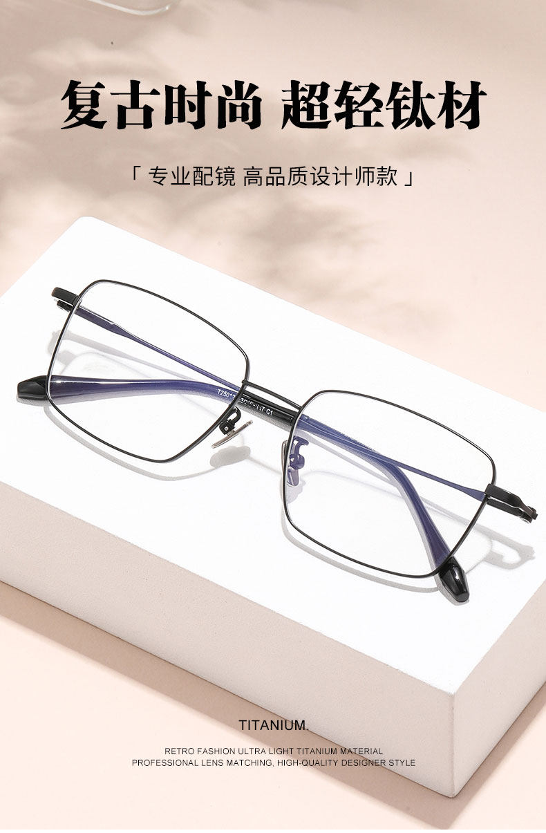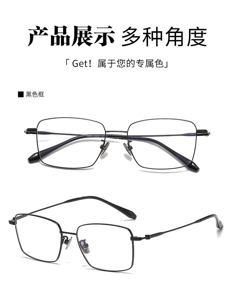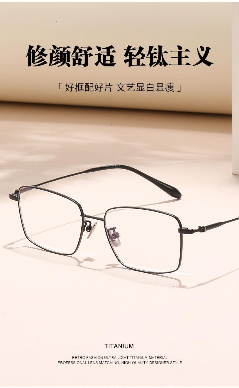 Ultra-Light Pure Titanium Anti-Blue Light Glasses for Men, Square Shape, Can Be Fitted with Prescription Lenses, Photochromic Business Square Frame Non-Prescription Glasses