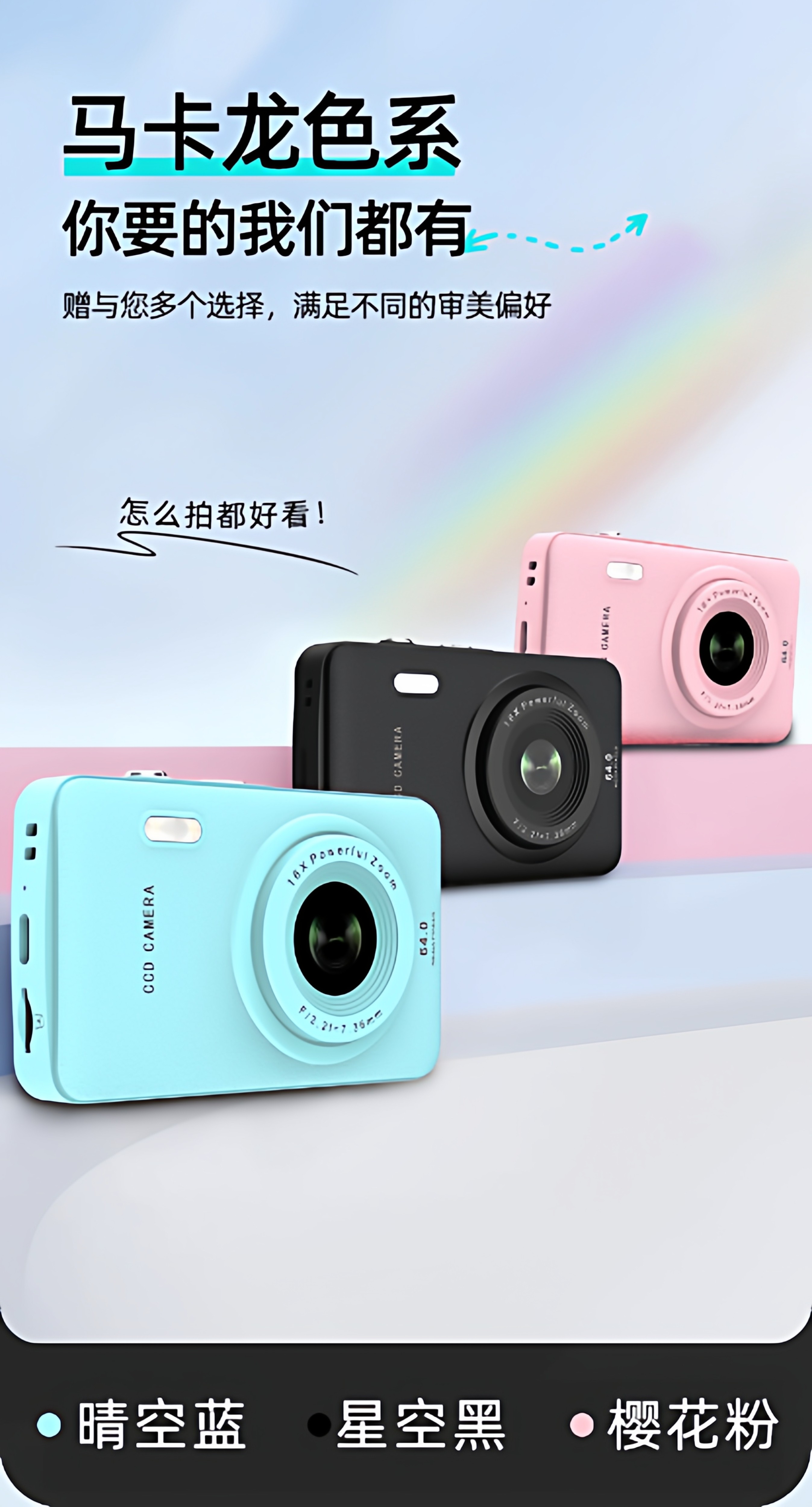 | Color Classification | Sakura Pink [64 Million Pixels + Hd Video + Smart Focus],Roland Purple [64 Million Pixels + Hd Video Recording + Intelligent Focus],Clear Sky Blue [64 Million Pixels + Hd Video + Intelligent Focus],Starry Sky Black [64 Million Pixels + Hd Video + Smart Focus],Pink [Upgraded Version] + 16X Zoom + Hd Photo Taking,Black [Upgraded Version] + 16X Zoom + Hd Photo Taking,White [Upgraded Version] + 16X Zoom + Hd Photo Taking,Orange [Upgraded Version] + 16X Zoom + Hd Photo Taking |
