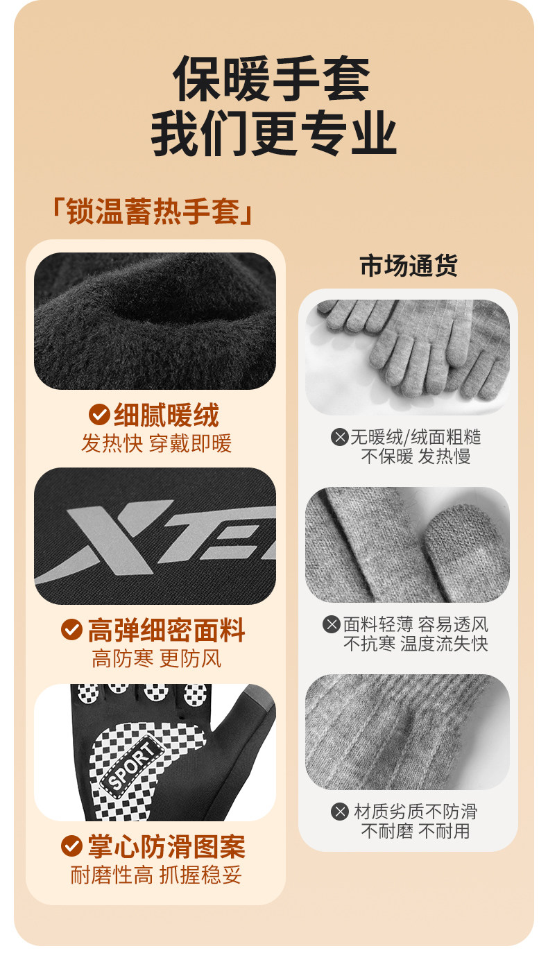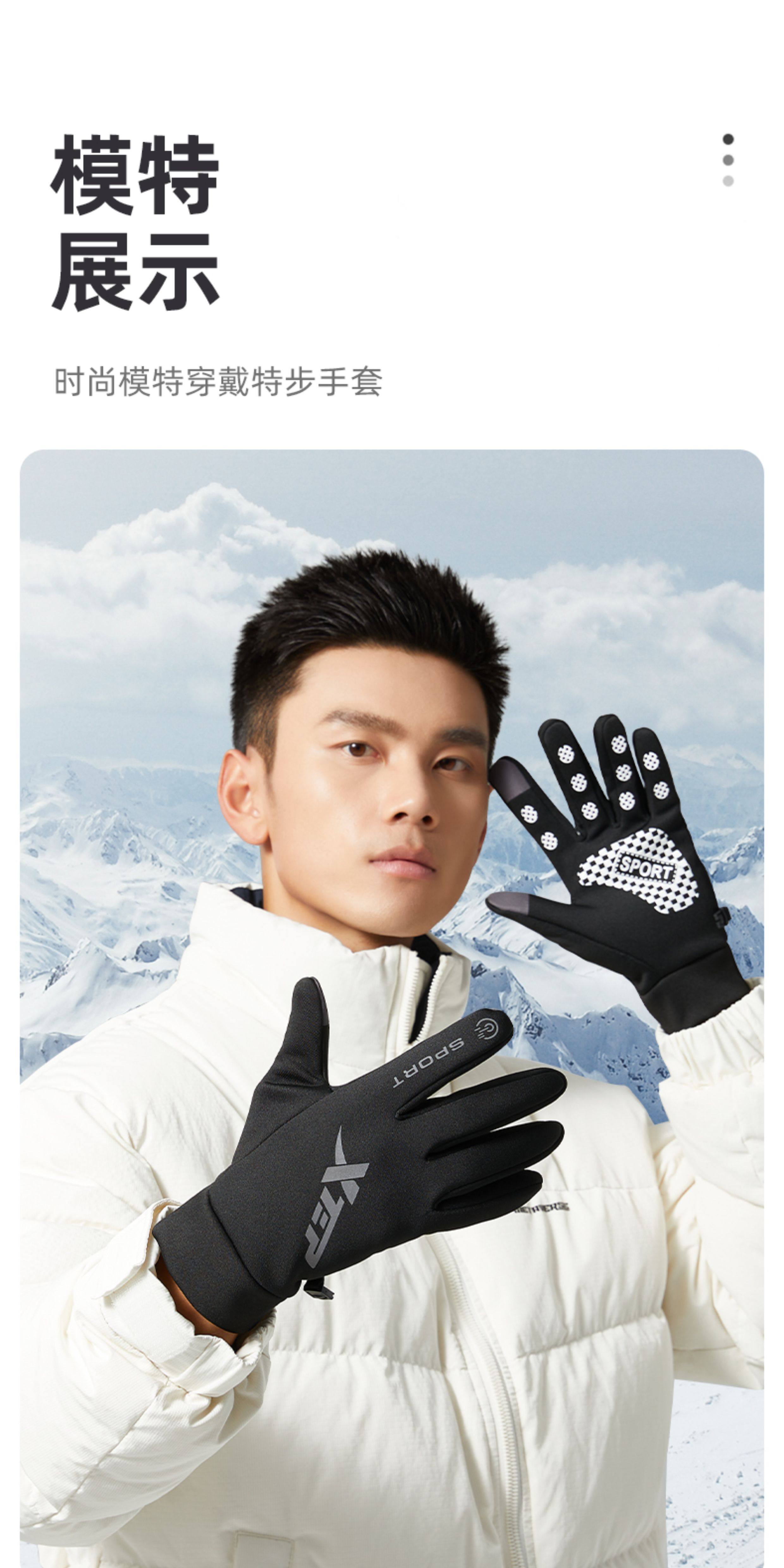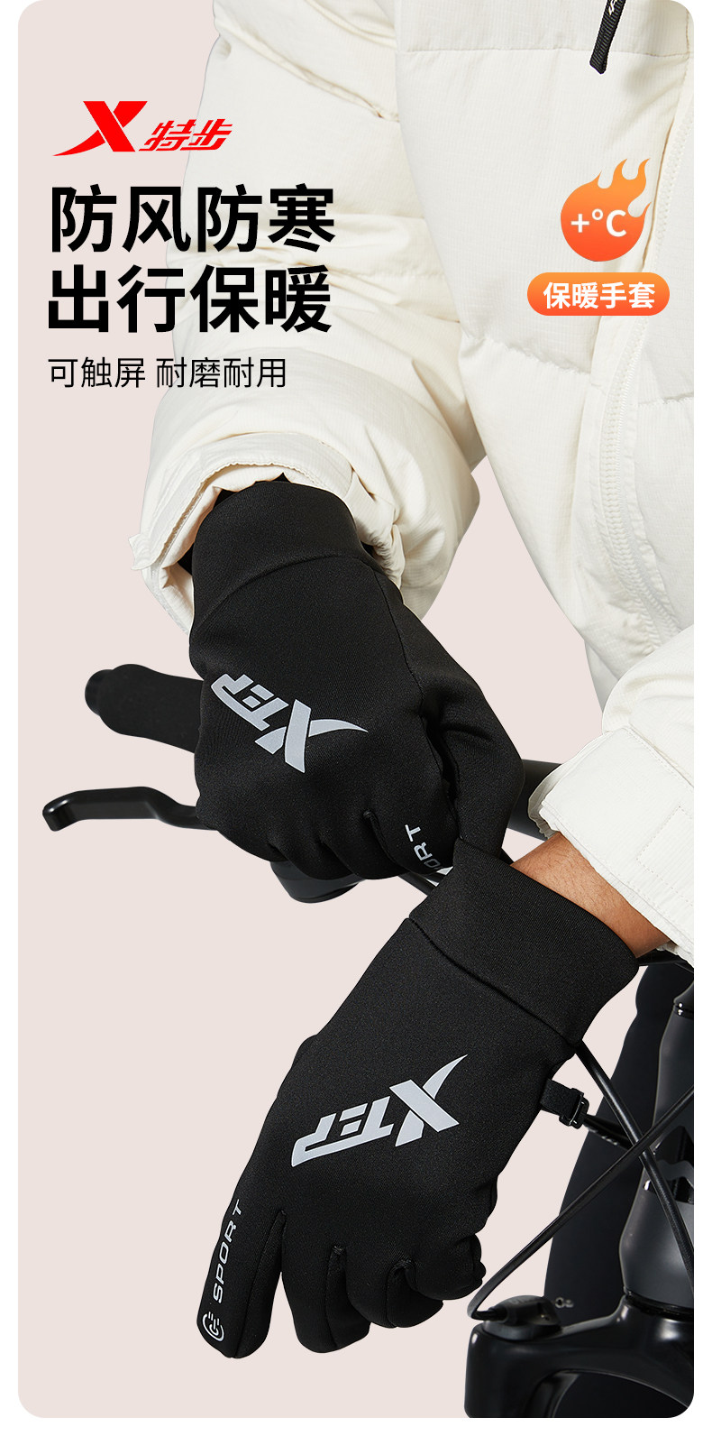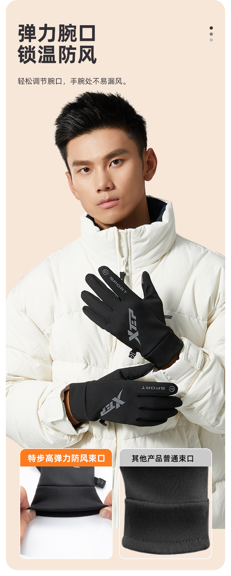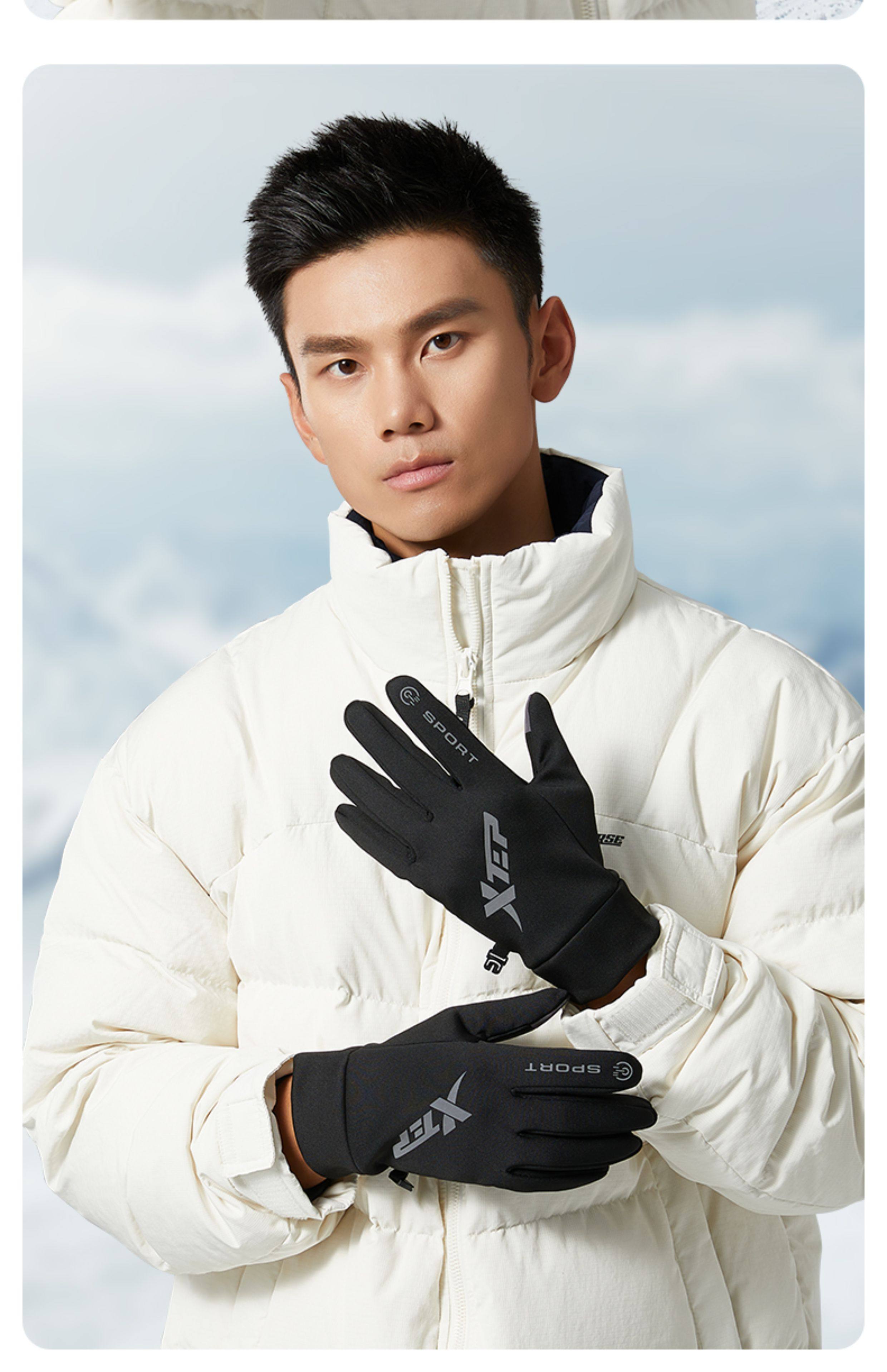 Xtep Cycling Gloves for Men, New Winter Fleece-Lined Warm Driving Gloves, Windproof, Touchscreen-Compatible, Suede Gloves for Cold Protection