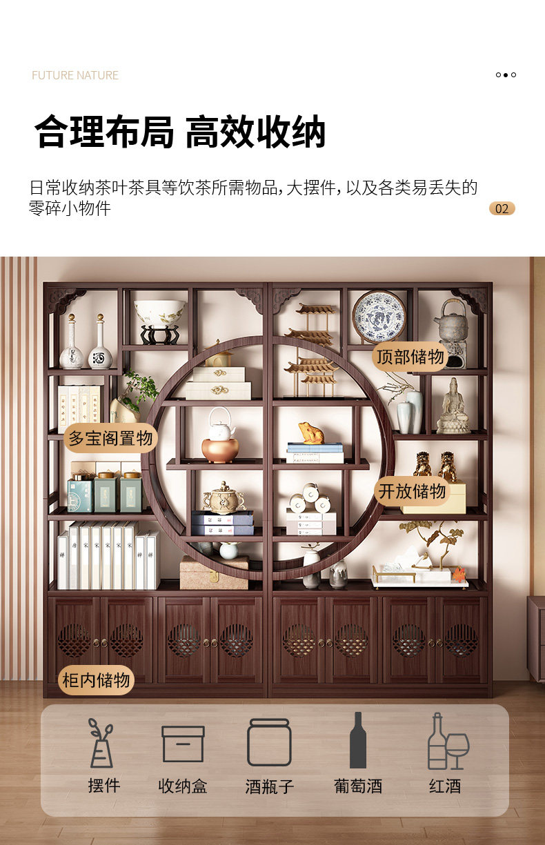 Antique-Style Tea Cabinet Storage Rack, Tea Room Tea Leaf Display Rack, Multi-Purpose Display Shelf, 2025 New Model