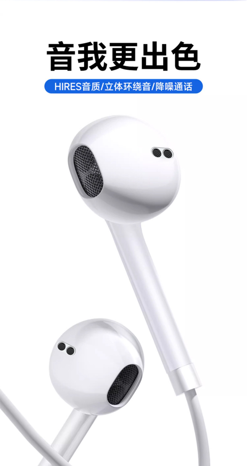 Oyoco Original Genuine Wired Headphones Suitable for iPhone 16 /15/14Promax13 Flat Head Round Hole Typec