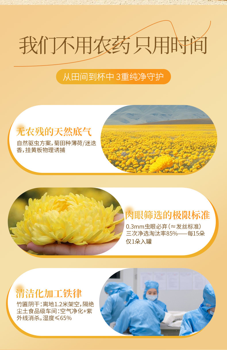 | Taste | 1 Can[Premium Golden Chrysanthemum]First Flush of New Flowers, Hand-Picked,2 Cans[Premium Golden Chrysanthemum]The Second Can Is Half Price, Green and Sulfur-Free,3 Cans[Premium Golden Chrysanthemum]Buy 2 Get 1 Free - Heat-Clearing and Fire-Reducing,5 Cans[Premium Golden Chrysanthemum]Buy 3 Get 2 Free to Protect Liver and Eyesight,[Buy 2 Get 1 Free]30% of Old Customers Choose Daily Maintenance |