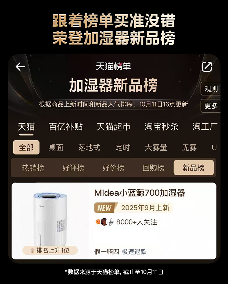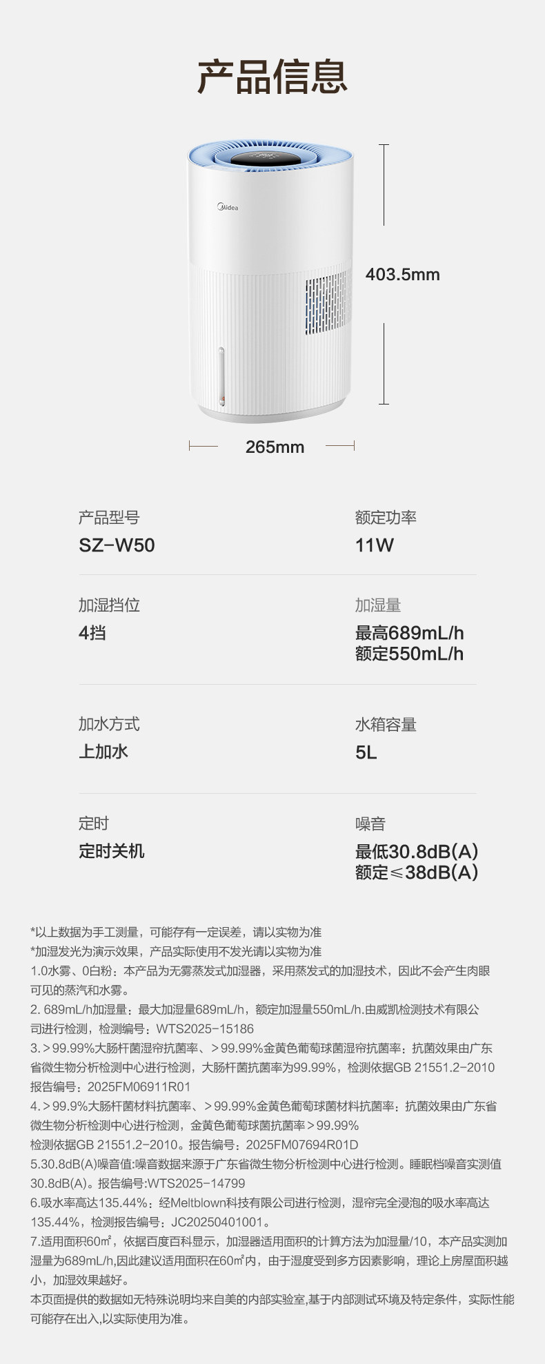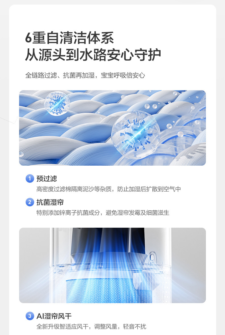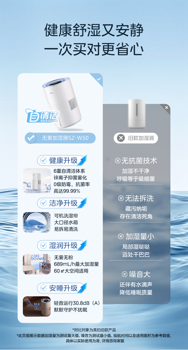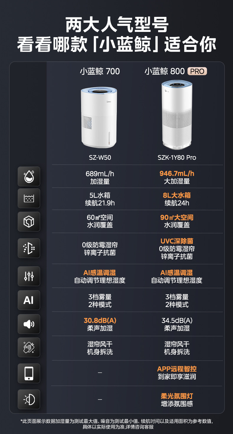 Midea Little Blue Whale 700 Fog-Free Air Humidifier W50 Purification Household Sterilization Atomizer for Pregnant Women and Baby Bedrooms
