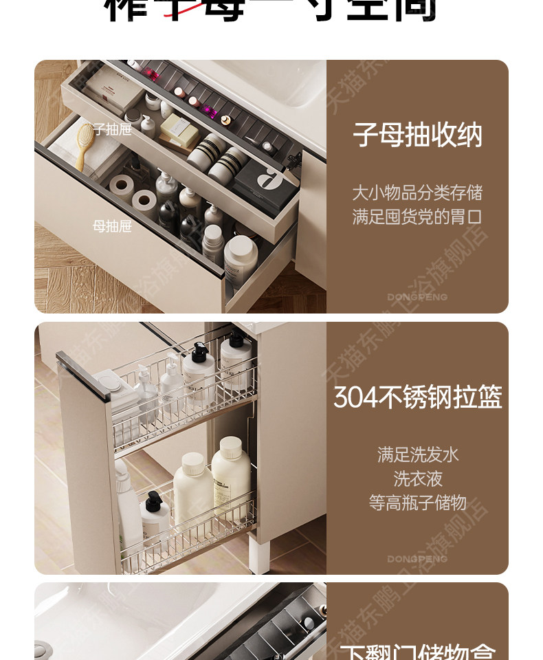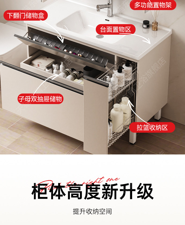 Dongpeng Floor-Standing Bathroom Cabinet Set with Drawer, Pull-Out Basket, Washbasin, Ceramic Integrated Basin, Smart Mirror Cabinet with Storage Rack