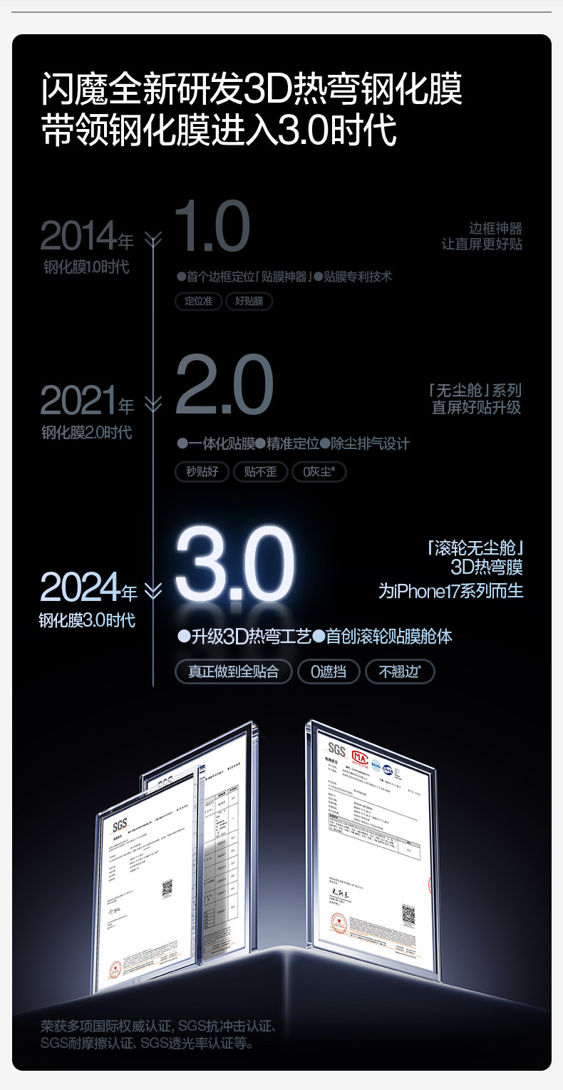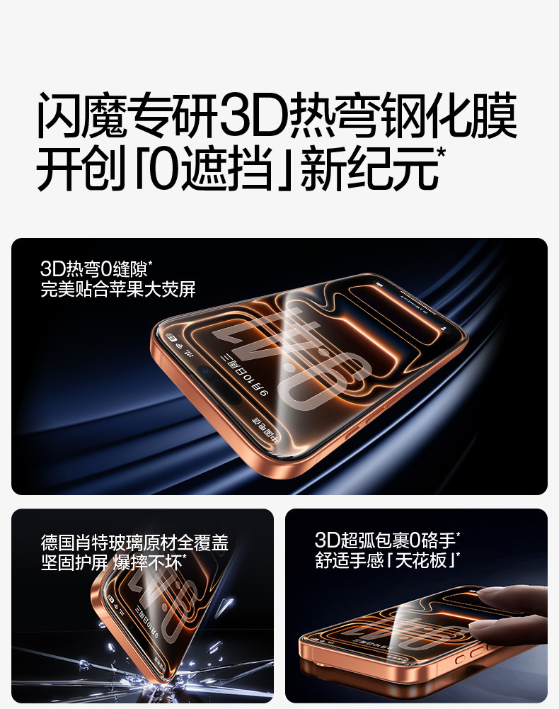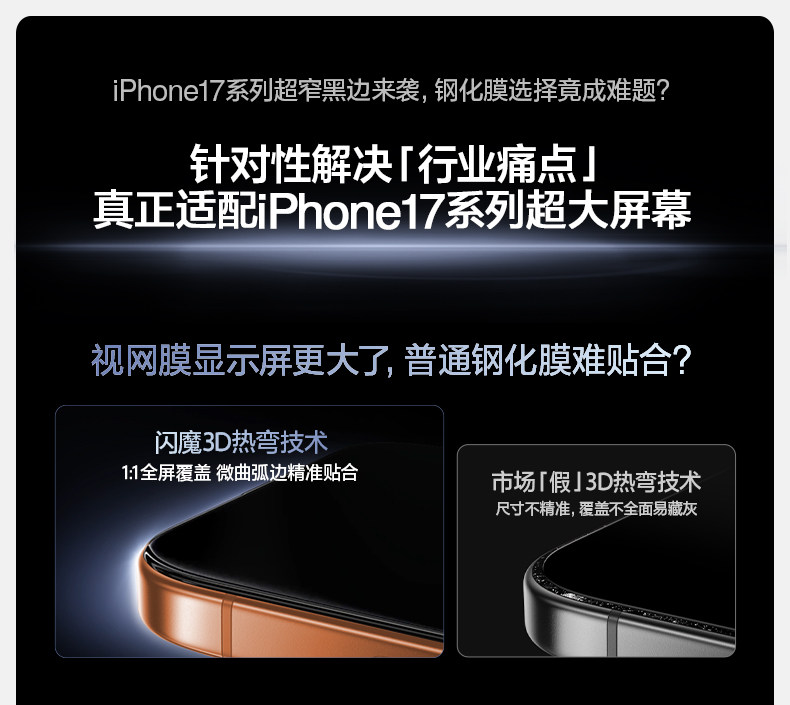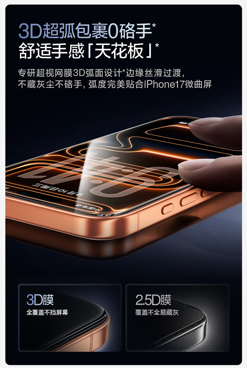 Flash Magic Short Original Material 3D Hot-Bending No Black Edge Tempered Film Suitable for Apple iPhone 17 Pro Max New Model Screen 17 Pro Full Screen Coverage iPhone Screen Protector Anti-Drop Protective Film Dust-Free Warehouse