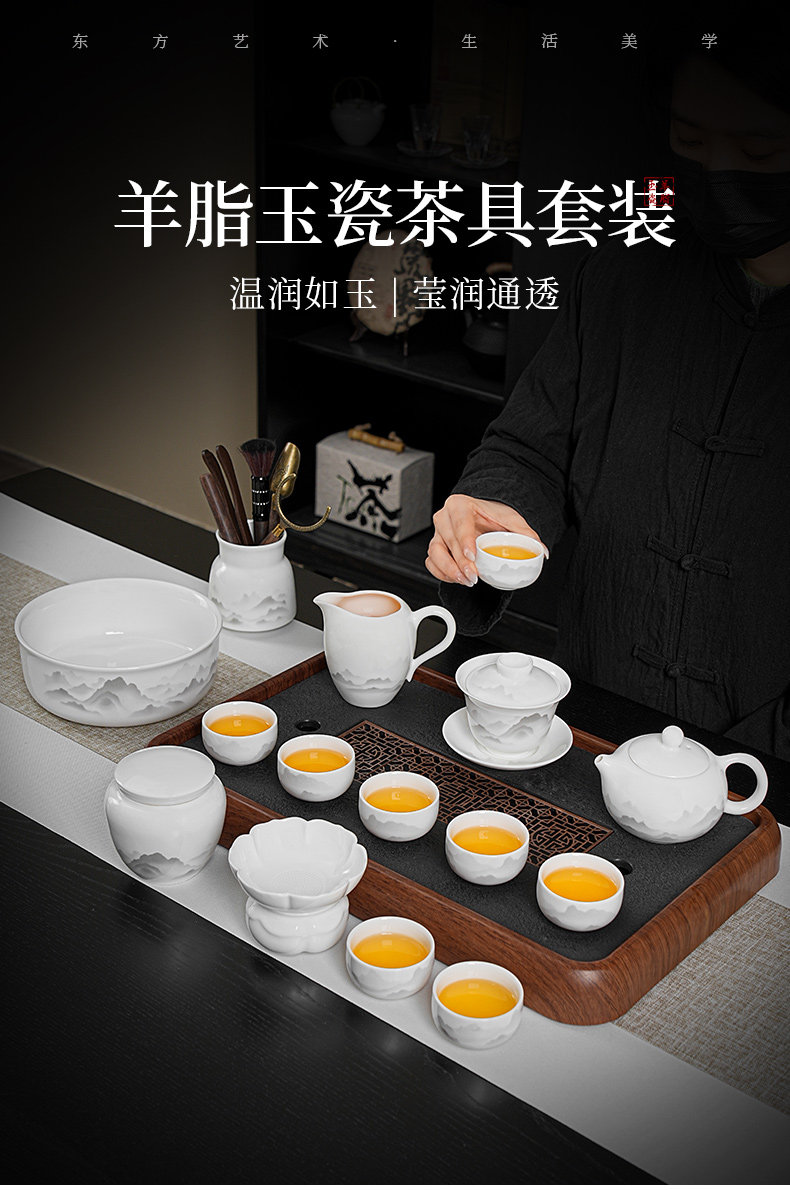 2026 New Model Jade Porcelain Complete Tea Set, High-End Light Luxury Office Tea Brewing Set, Special Teapot and Teacups