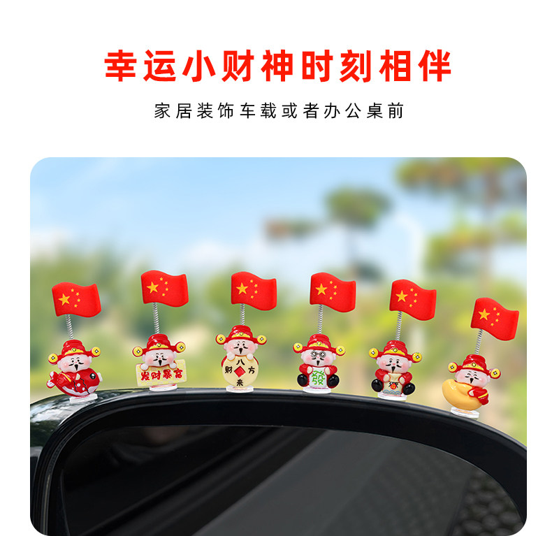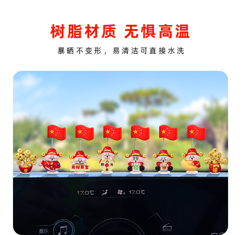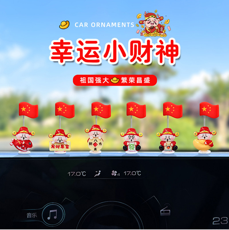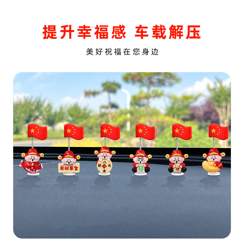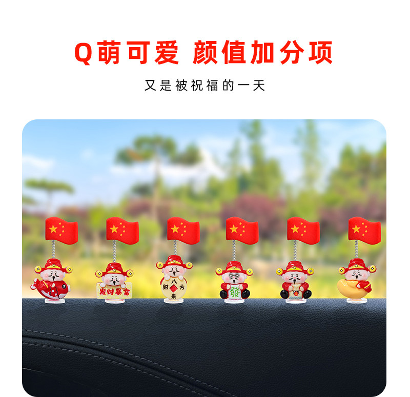 Fortune God National Day Red Flag Car Interior Decoration 2026 New Model Funny Car Dashboard Healing Item
