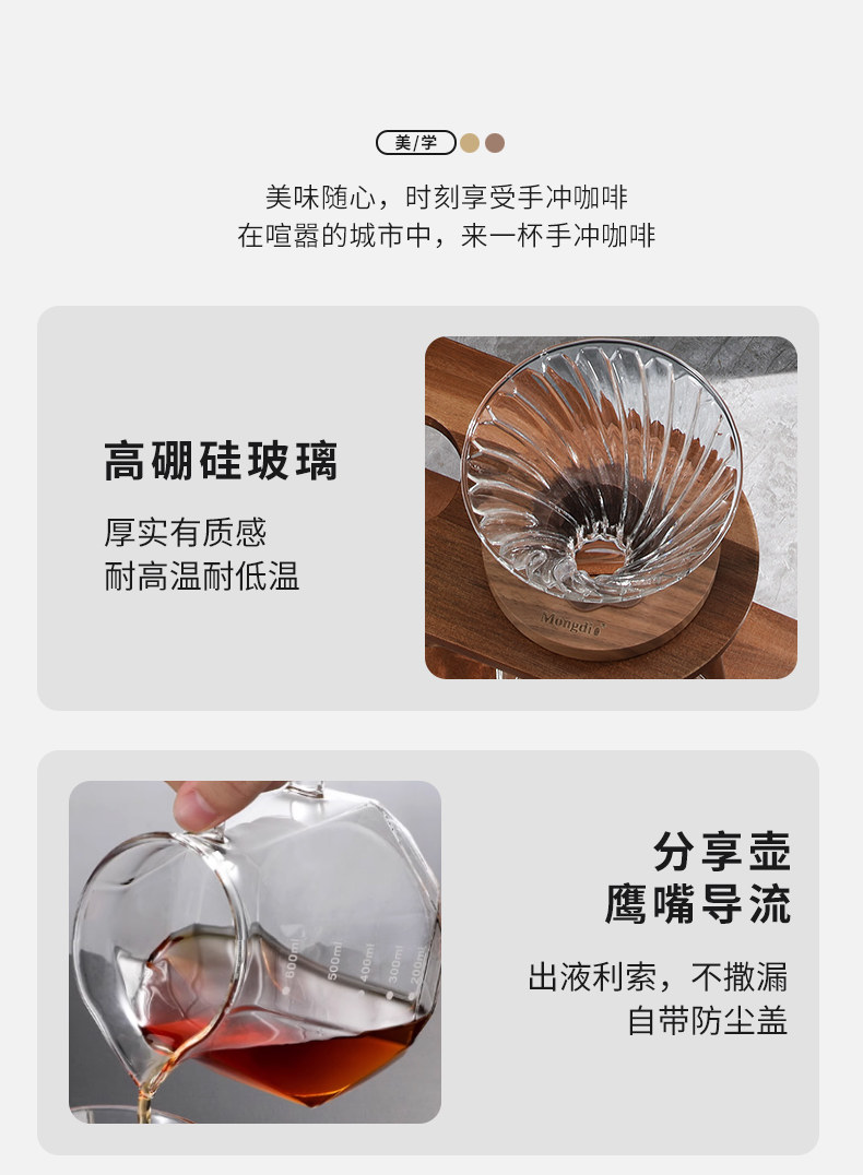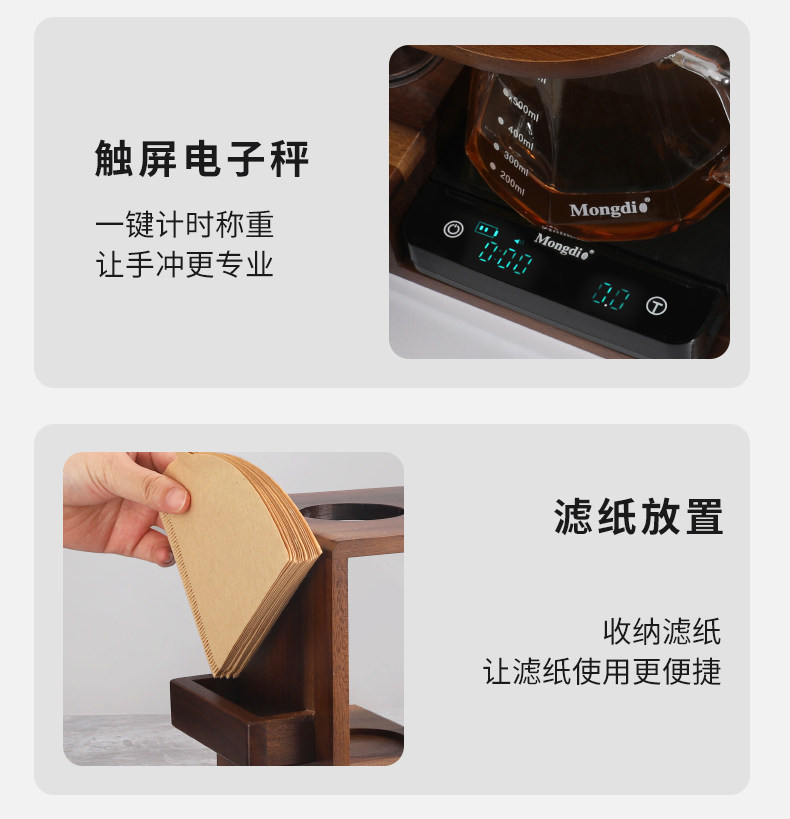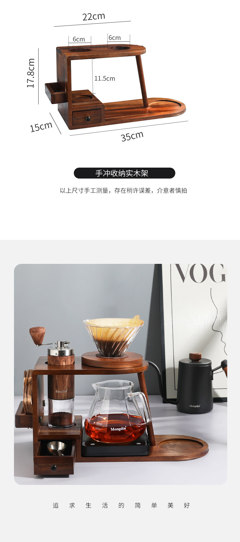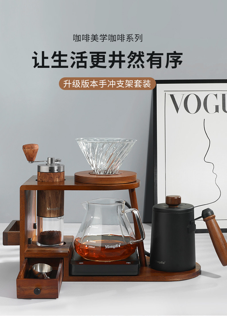 Mongdio Hand-Brewed Coffee Pot Set, Hand-Grind Coffee Machine, Storage Wooden Stand, Coffee Hand-Brewed Pot, Coffee Utensils