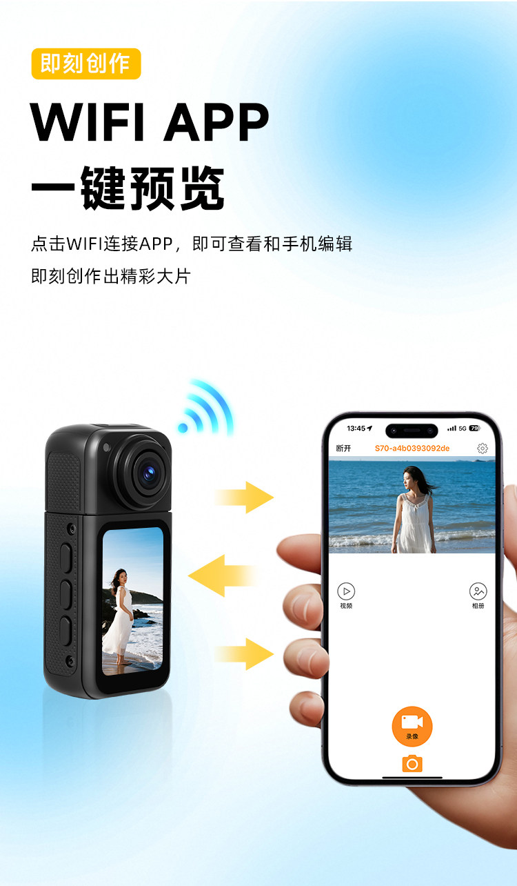 Sports Thumb Camera Portable Ultra-Clear Recorder Chest-Mounted Vlog Anti-Shake Photography Wifi Transmission Camera