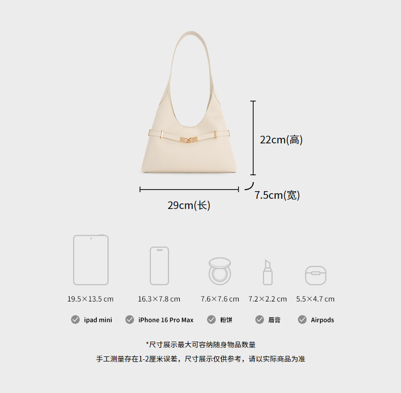 Charles&Keith25 New Autum Collection Ck2-40271621 Belt Buckle Simple Shoulder Underarm Bag