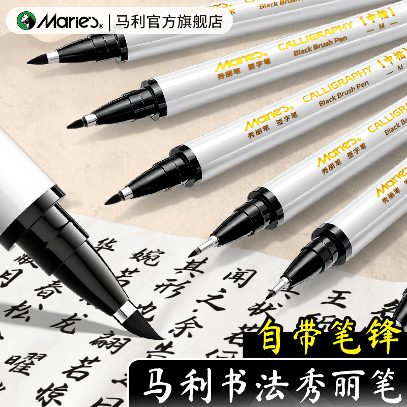 Mali Calligraphy Pen for Practicing Writing, Soft Tip Pen with Built-In Brush Tip, Art-Specific Fine, Medium, and Large Script Pens, White Signature Pen, Fine Line Drawing Pen, Pen-Style Brush Pen, Official Flagship Store