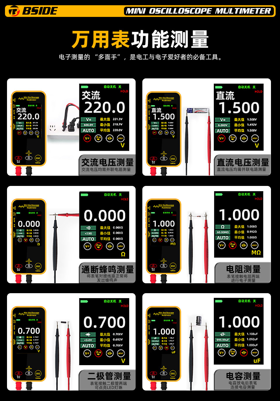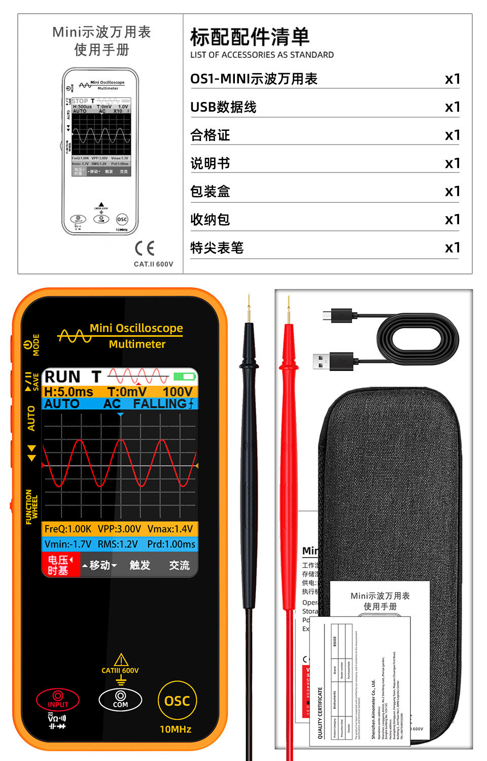 | Color Classification | Os1 Mini Oscilloscope Multimeter 10m Bandwidth,Osi Mini 2-in-1 + Alligator Clip Cable,Osi Mini 2-in-1 Multimeter + 80-Core Silicone-Coated Stainless Steel Test Leads,Osi Mini Two-In-One + Digital Display Test Pen,Osi Mini 2-in-1 + Phase Sequence Tester,Osi Mini Two-In-One + Fully Automatic Clamp Meter |