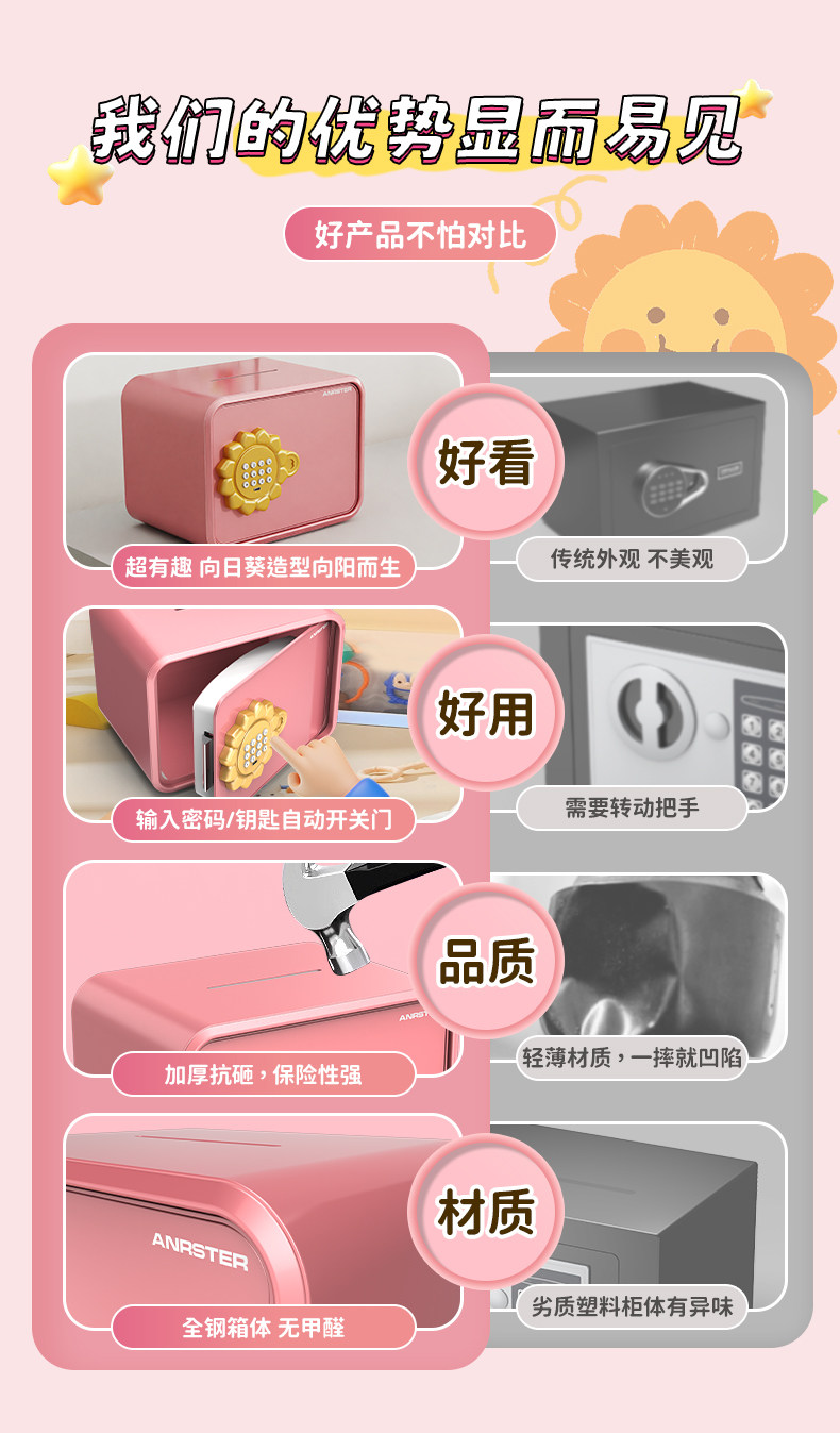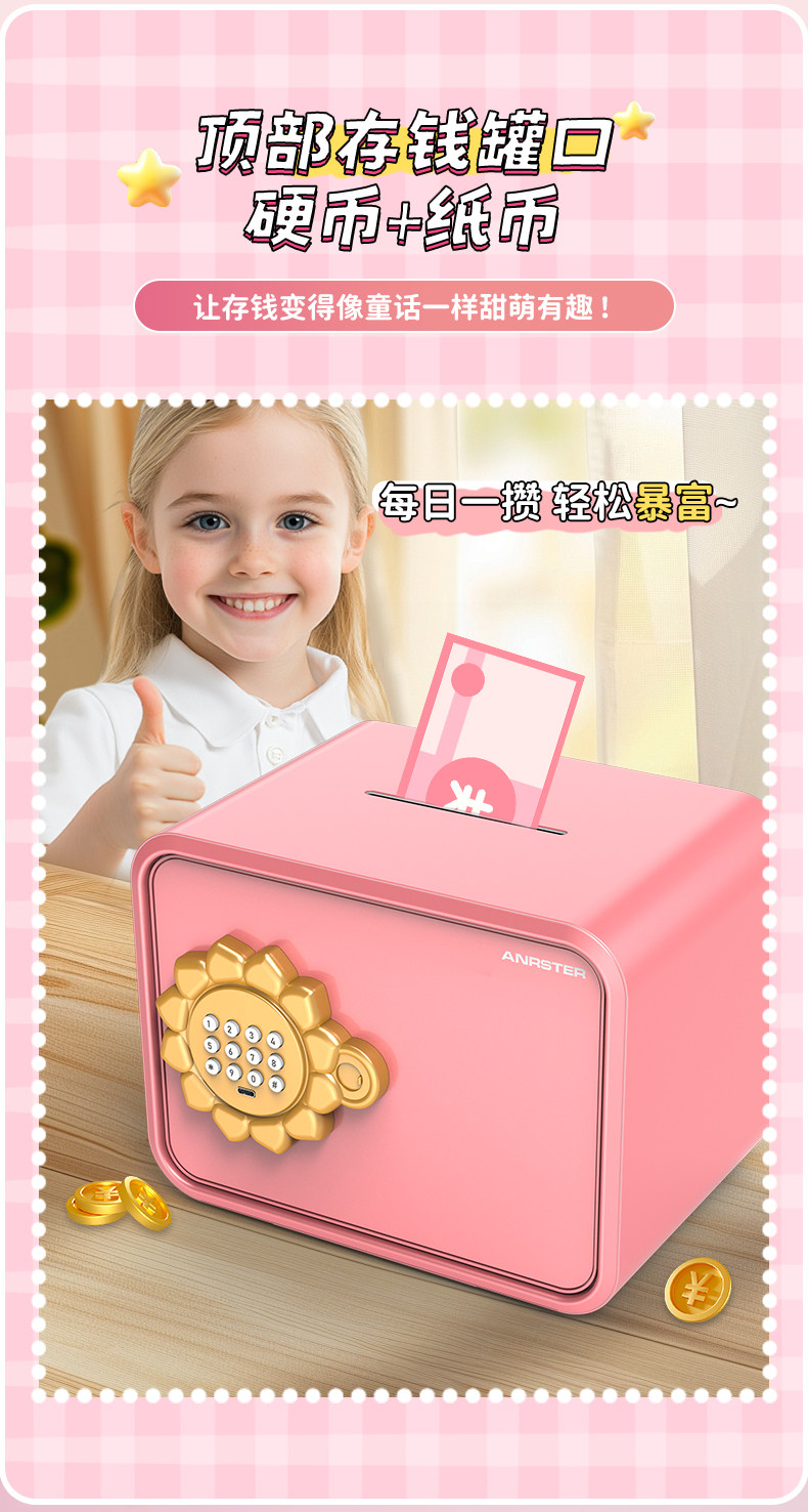 Ounais Safe Deposit Box for Home Use, Small Piggy Bank, 2025 New Model, Only Deposits No Withdrawals, Children's Mini Smart Password Box, Savings Safe, Good-Looking Birthday Gift for Boys and Girls, Automatic Door Opening and Closing