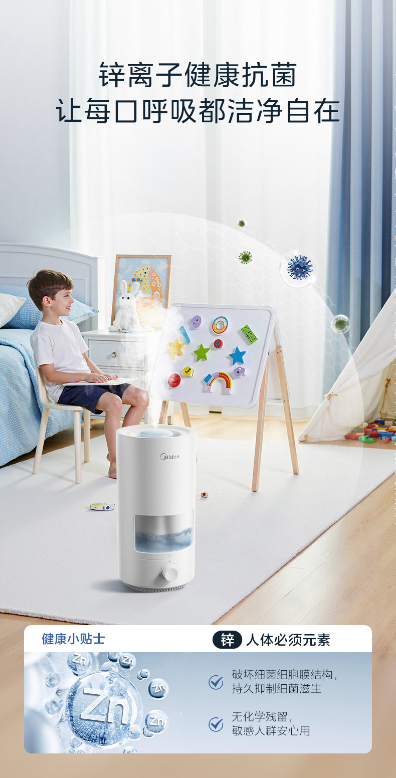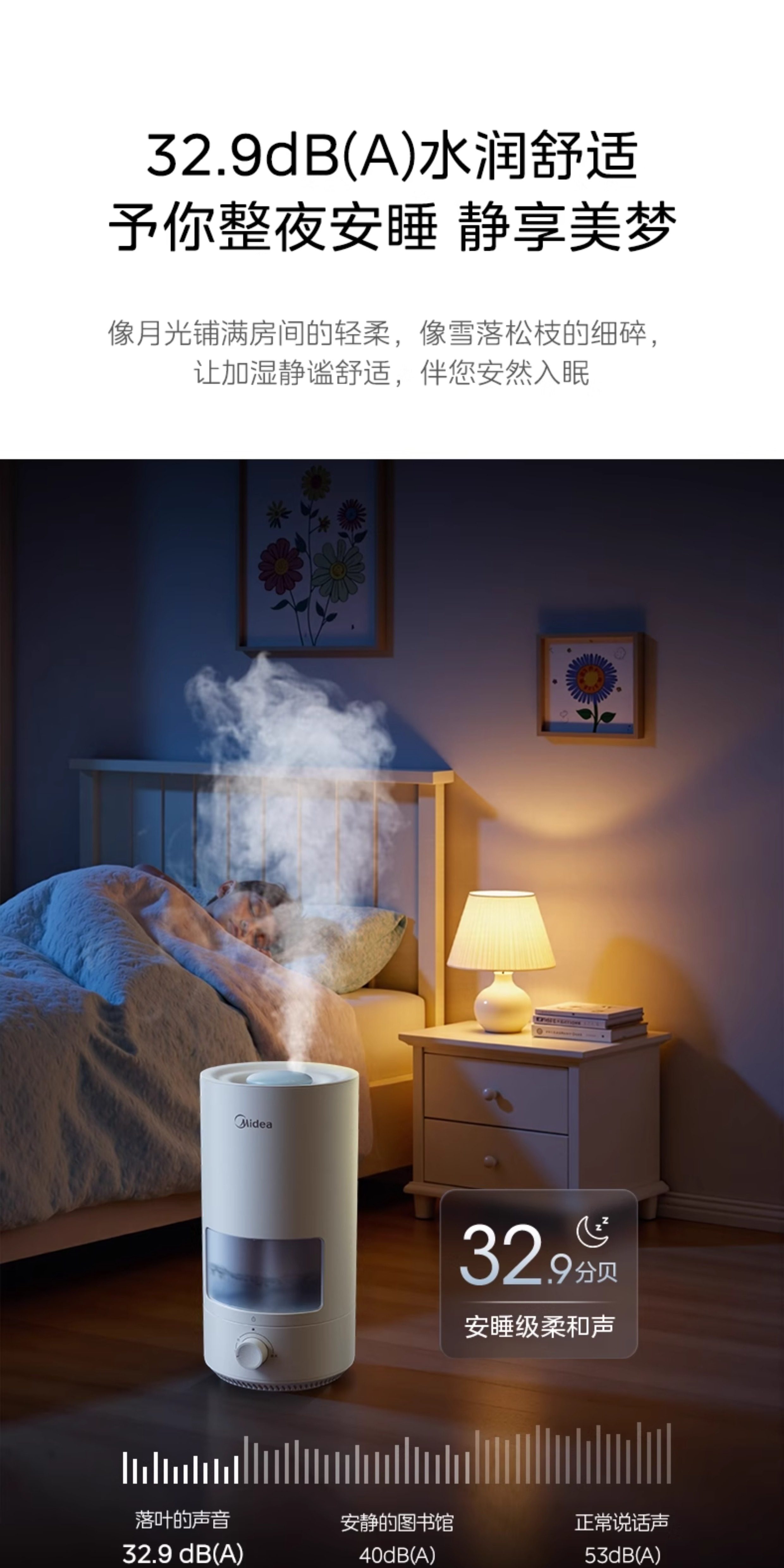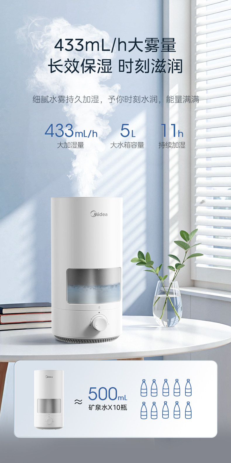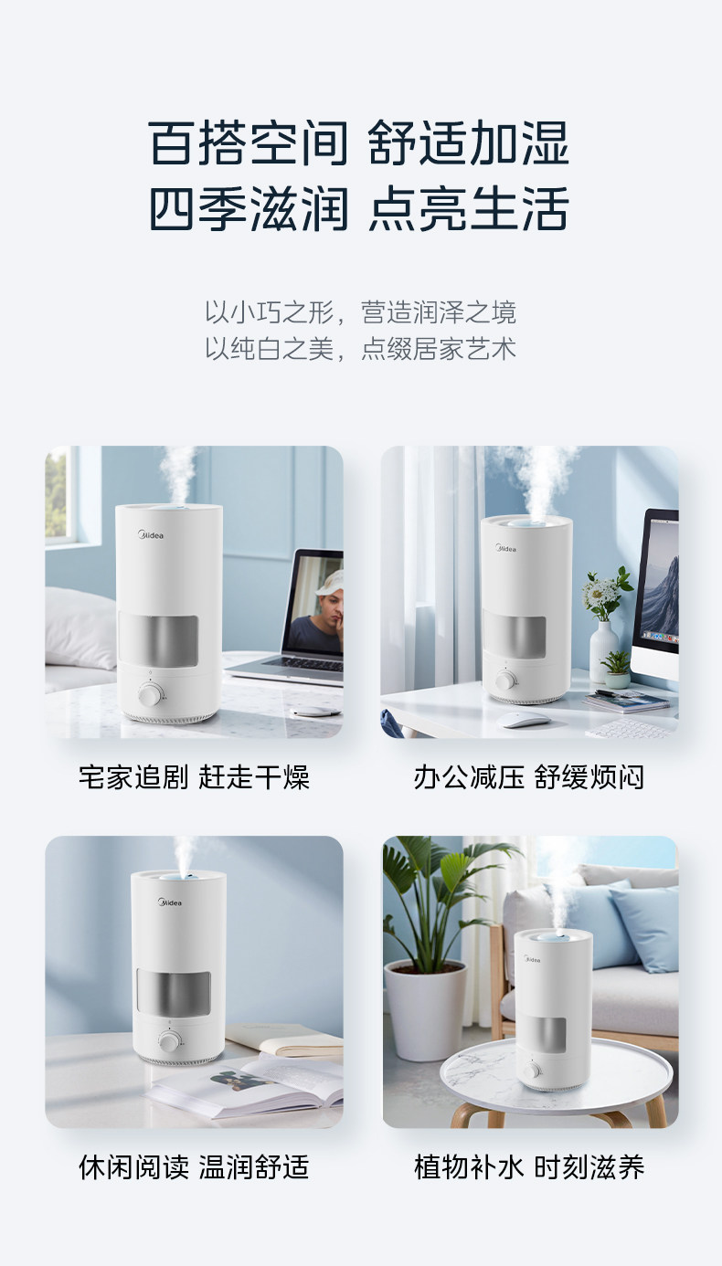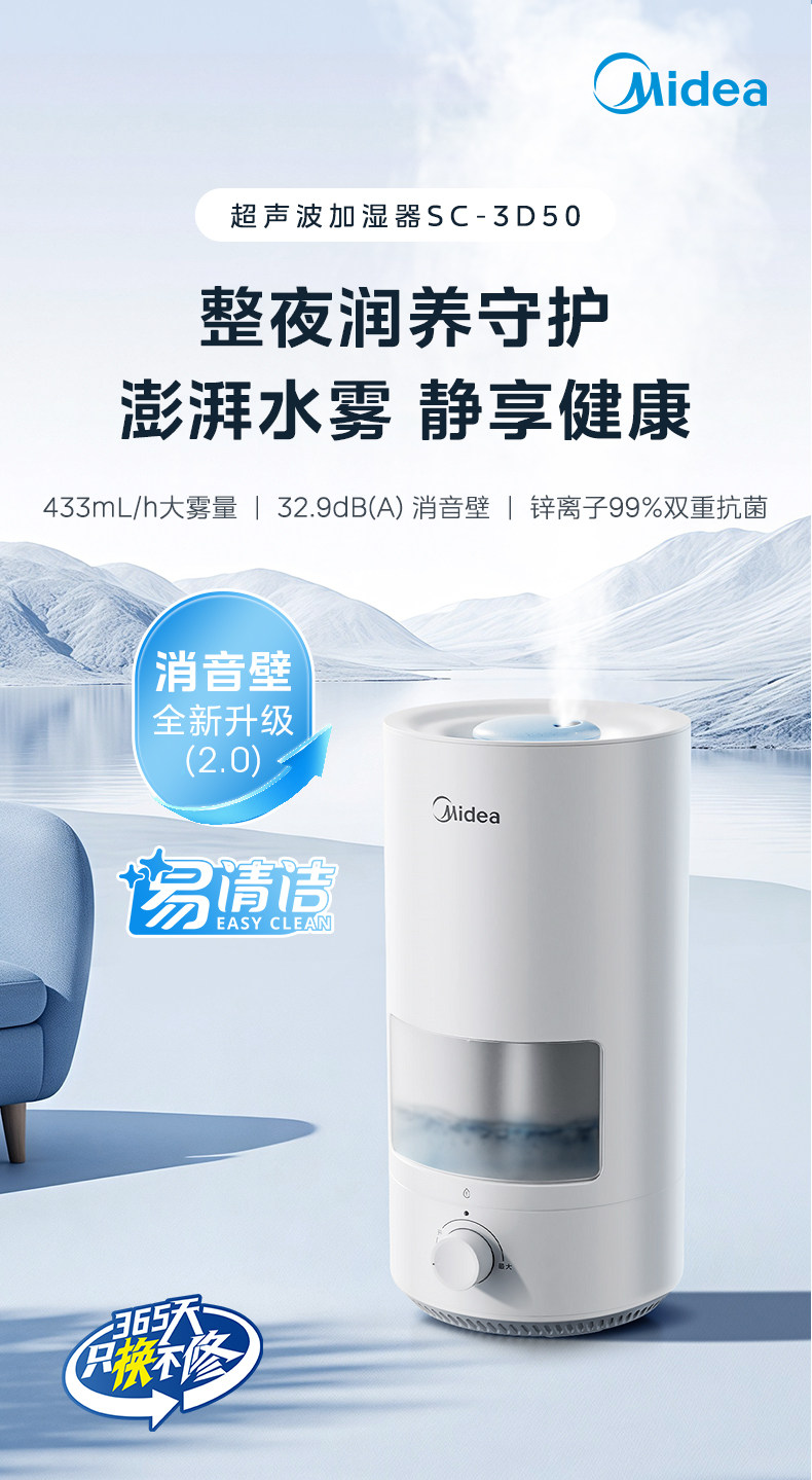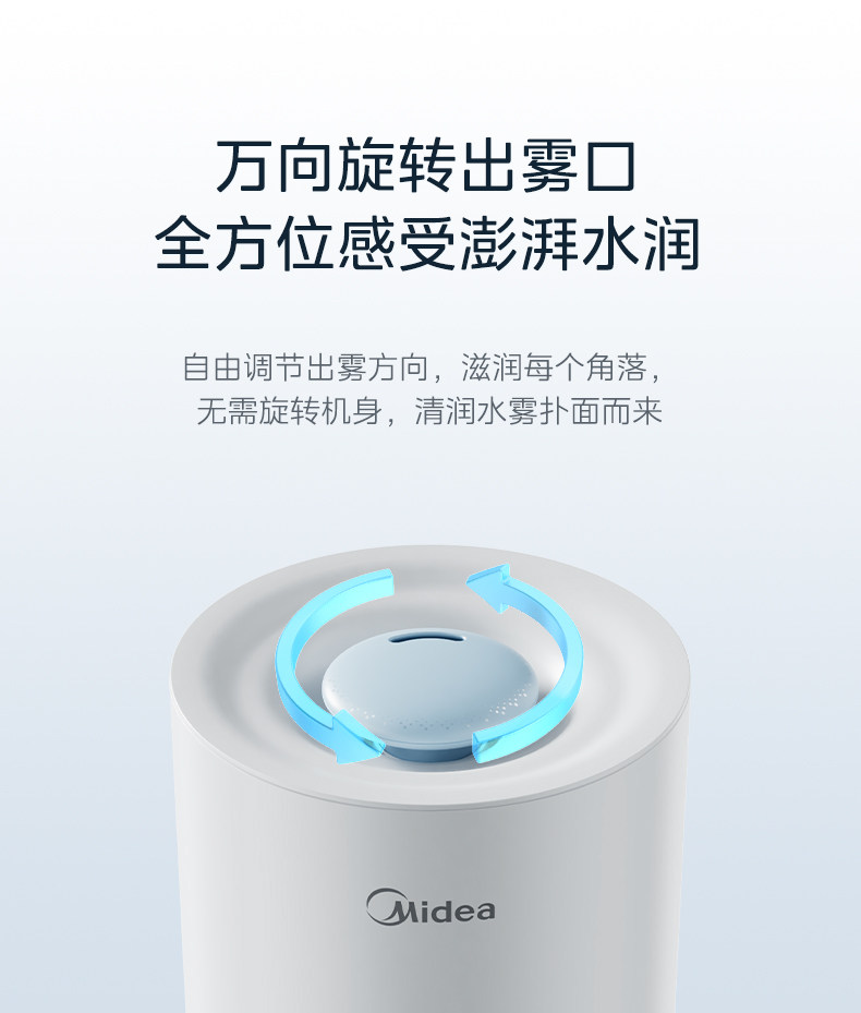 Midea Humidifier for Home Bedroom, Quiet and Antibacterial, Suitable for Pregnant Women and Infants, 3D50 Air Humidification, Large Spray, 2025 Model
