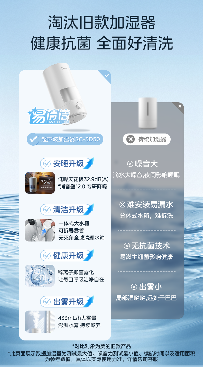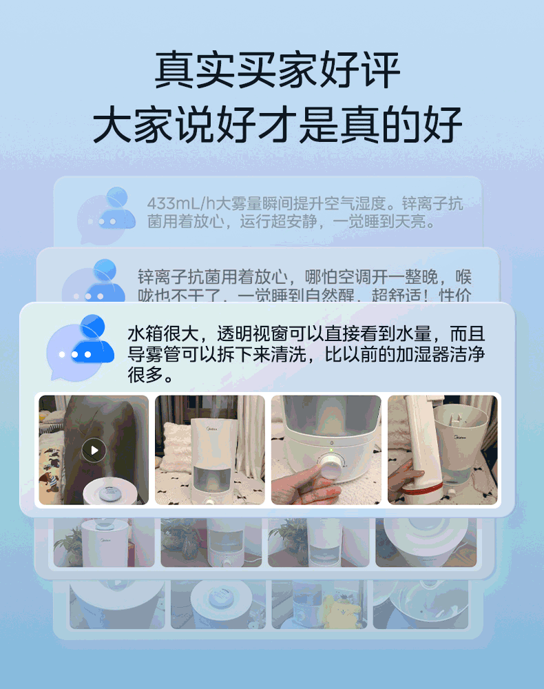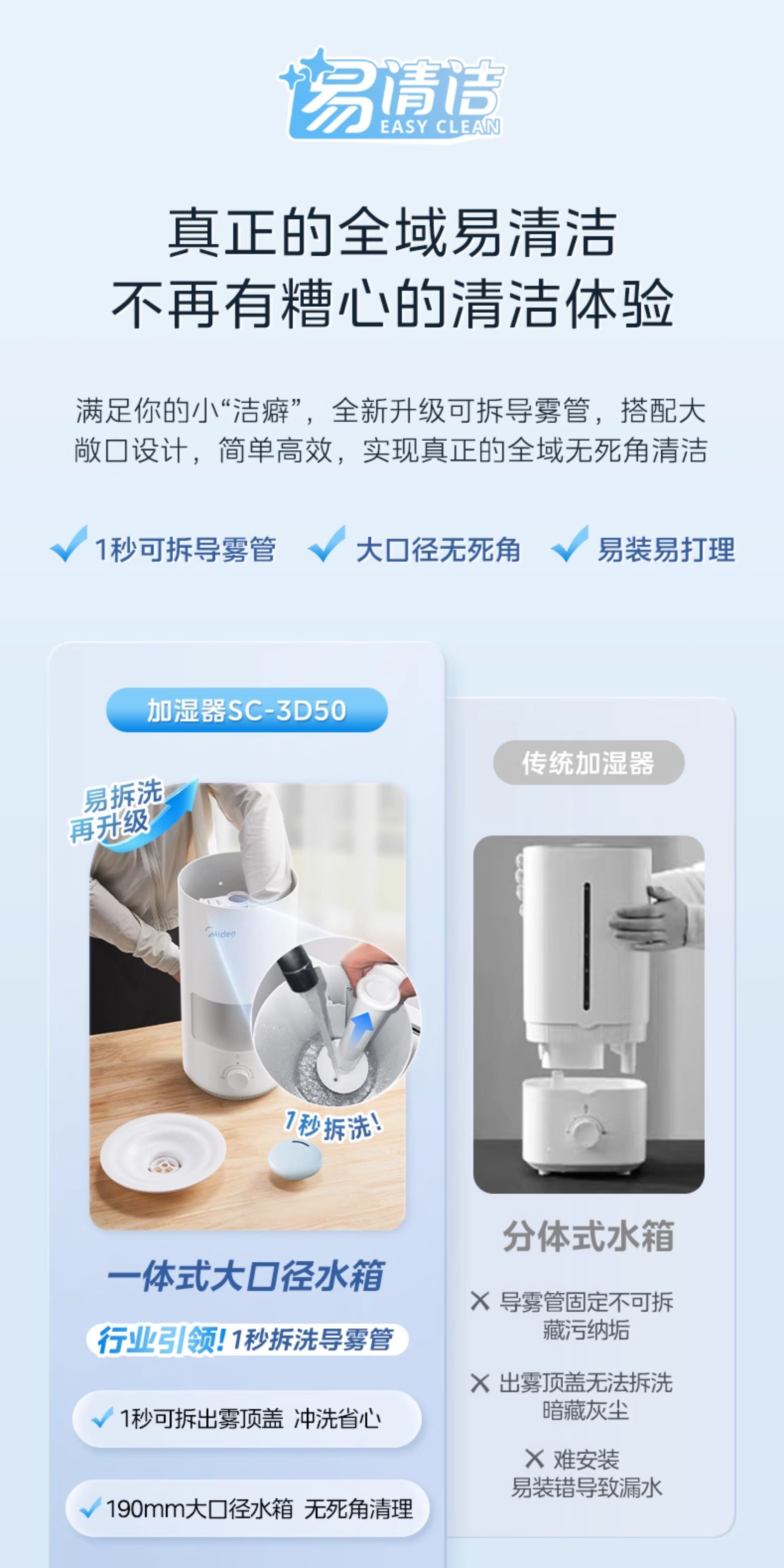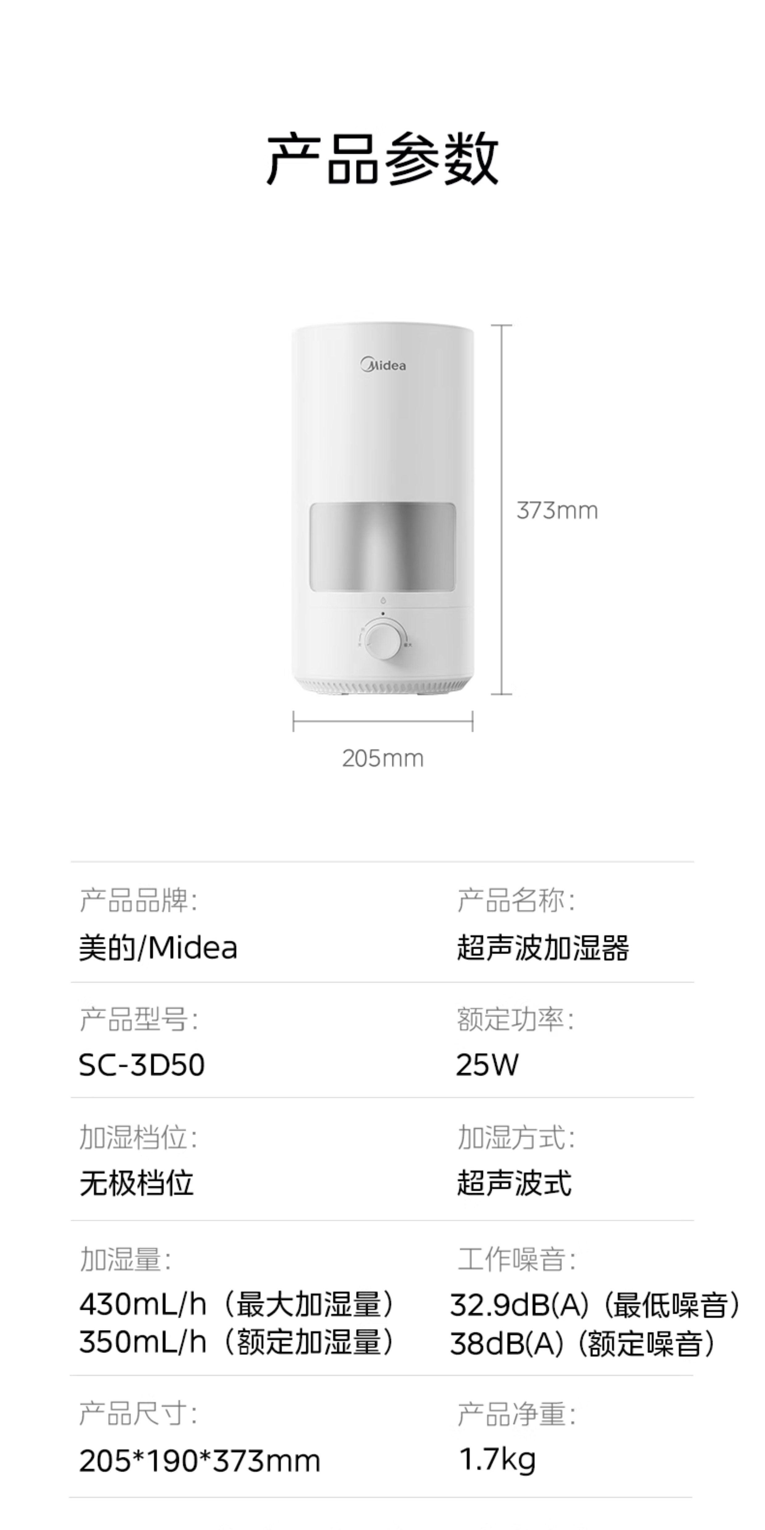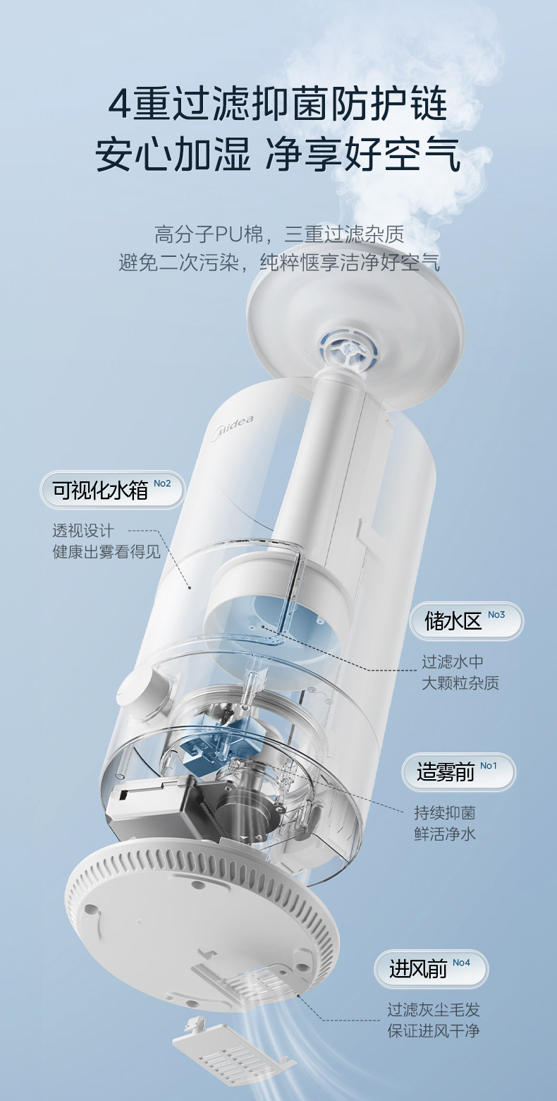 Midea Humidifier for Home Bedroom, Quiet and Antibacterial, Suitable for Pregnant Women and Infants, 3D50 Air Humidification, Large Spray, 2025 Model