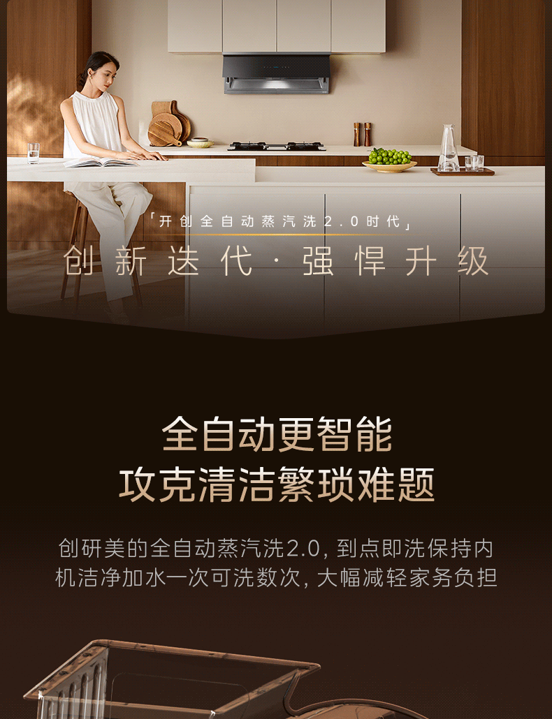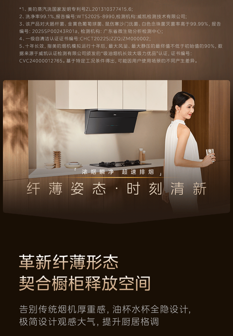 [New Product]Midea Ak11 Steam Wash 2.0 Range Hood, Ultra-Thin Top and Side, High Suction, Flagship Genuine Product