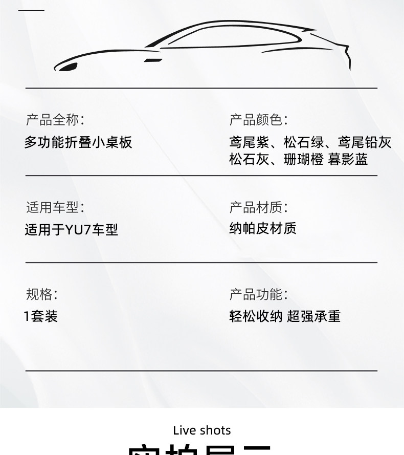 | Color Classification | [Add to Favorites + Cart]Original Car Nappa Leather √ Quality Assurance √ Vehicle-Grade Material, 0 Formaldehyde, No Odor,Suitable for Yu7[Iris Purple Gray]Multifunctional Folding Small Table for Car-Nappa Leather Cover/1 Pack,Suitable for Yu7[Iris Purple]Multifunctional Folding Small Table for Car-Nappa Leather Cover/1 Pack,Suitable for Yu7[Limestone]Multifunctional Folding Small Table for Car-Nappa Leather Cover/1 Pack,Suitable for Yu7[Turquoise Green]Multifunctional Folding Small Table for Car-Nappa Leather Cover/1 Pack,Suitable for Yu7[Twilight Blue]Multifunctional Folding Small Table for Car-Nappa Leather Cover/1 Pack,Suitable for Yu7[Coral Orange]Multifunctional Folding Small Table for Car-Nappa Leather Cover/1 Pack,---The Following Applies to Su7 Models---,Suitable for Su7[Misty Purple]Multifunctional Folding Small Table for Car-Nappa Leather Cover/1 Pack,Suitable for Su7[Beige]Multifunctional Folding Small Table for Car-Nappa Leather Cover/1 Pack,Suitable for Su7[Obsidian Black]Multifunctional Folding Small Table for Car-Nappa Leather Cover/1 Pack,Suitable for Su7[Twilight Red]Multifunctional Folding Small Table for Car-Nappa Leather Cover/1 Pack |