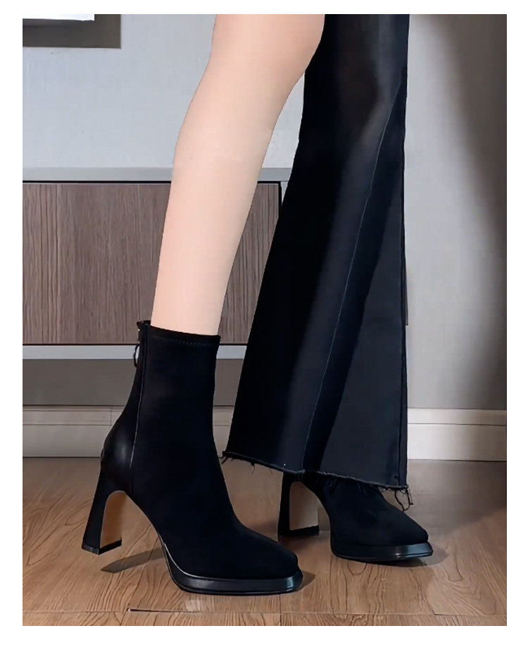 High-End French Style Petite Platform High-Heeled Short Boots for Women, Chunky Heel, 2025 New Square Toe Suede Slim Boots