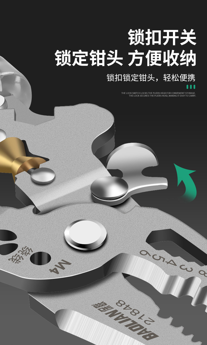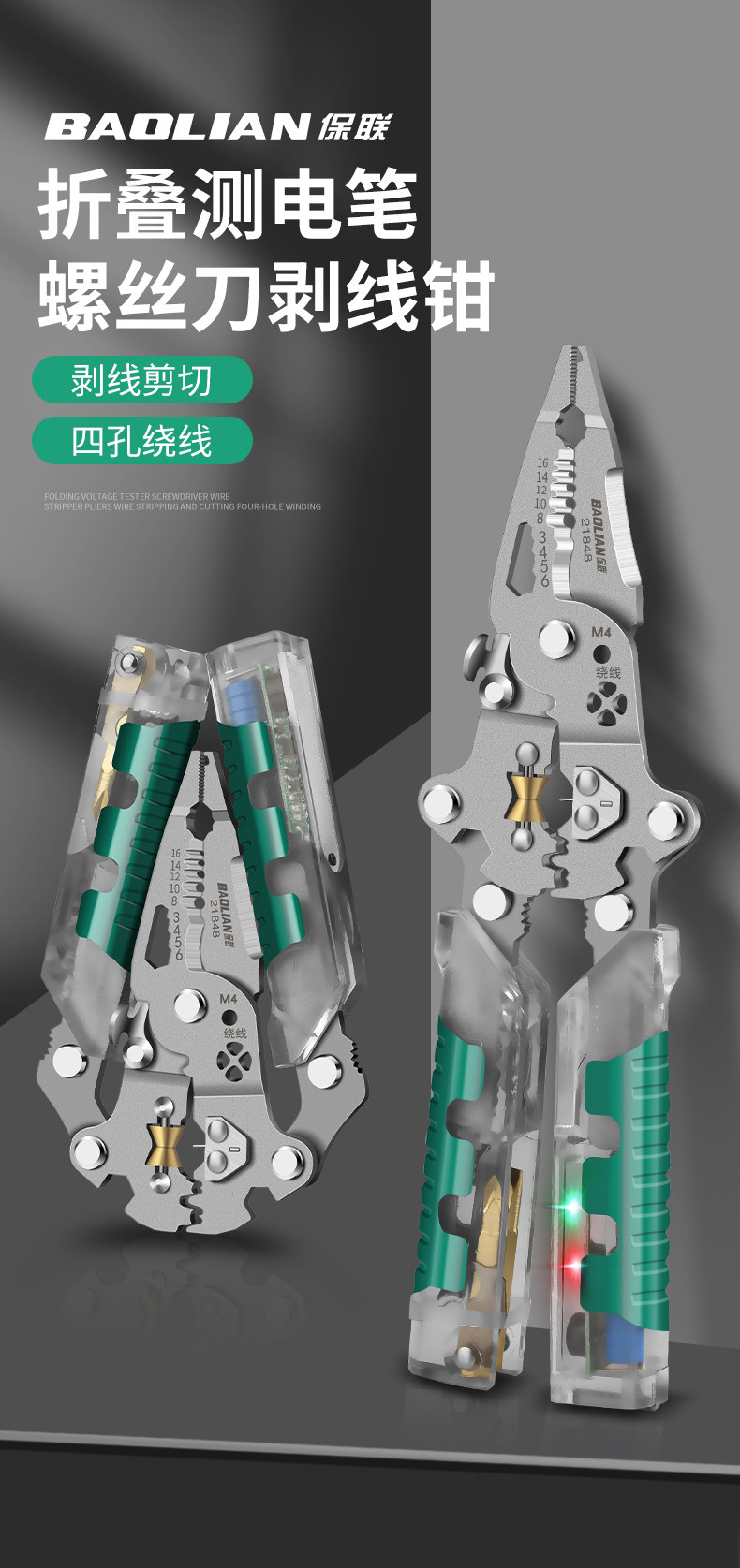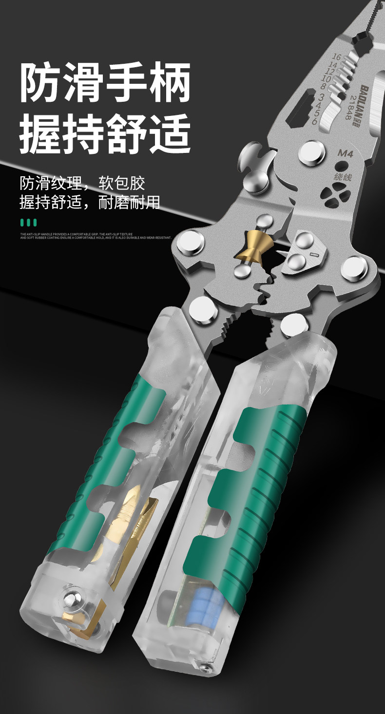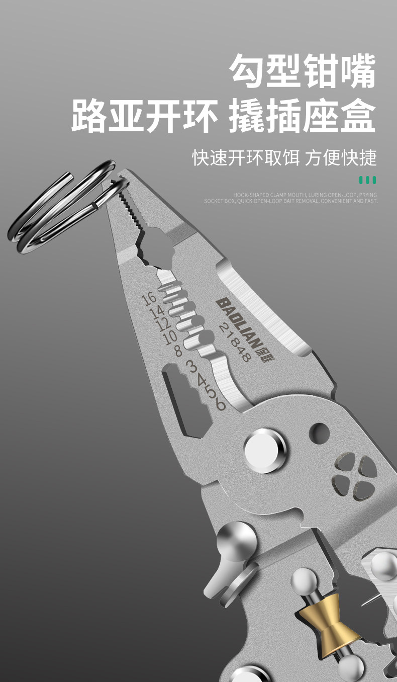 Baolian Folding Electrical Wire Stripping Pliers, Multifunctional Tool for Electricians, Wire Cutting Pliers, Wire Stripping Tool