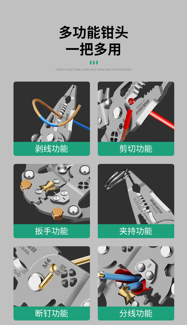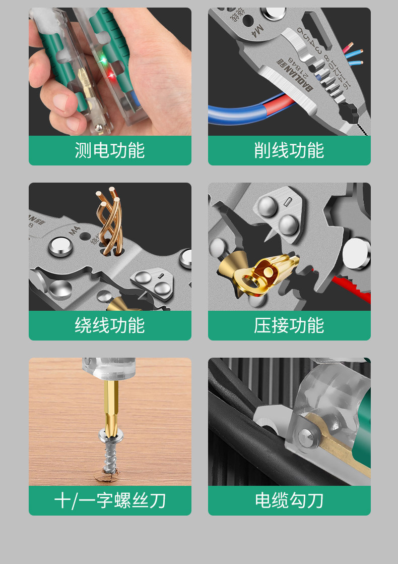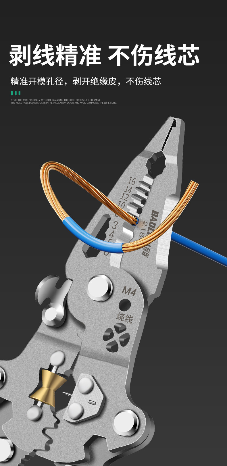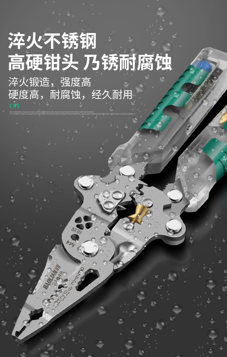 Baolian Folding Electrical Wire Stripping Pliers, Multifunctional Tool for Electricians, Wire Cutting Pliers, Wire Stripping Tool