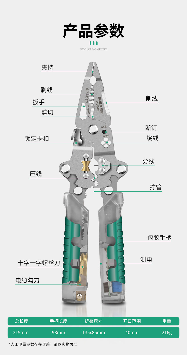 | Color Classification | Measurable Electric Tip [Folding 8inch] 23-in-1 Multi-Function,Measurable Electric Tip [Folding 8inch] 23-in-1 Multi-Function + 9m Insulating Tape*5,Measurable Electric Tip [Folding 8inch] 23-in-1 Multi-Function + 9m Insulating Tape *5 + Dual-Purpose Screwdriver,Sharp Mouth [Folding 8inch] 16-in-1 Multifunctional,Round Mouth [Folding 8inch] 18-in-1 Multifunctional Tool,Eagle Mouth [Folding 8inch] 18-in-1 Multifunctional Tool |