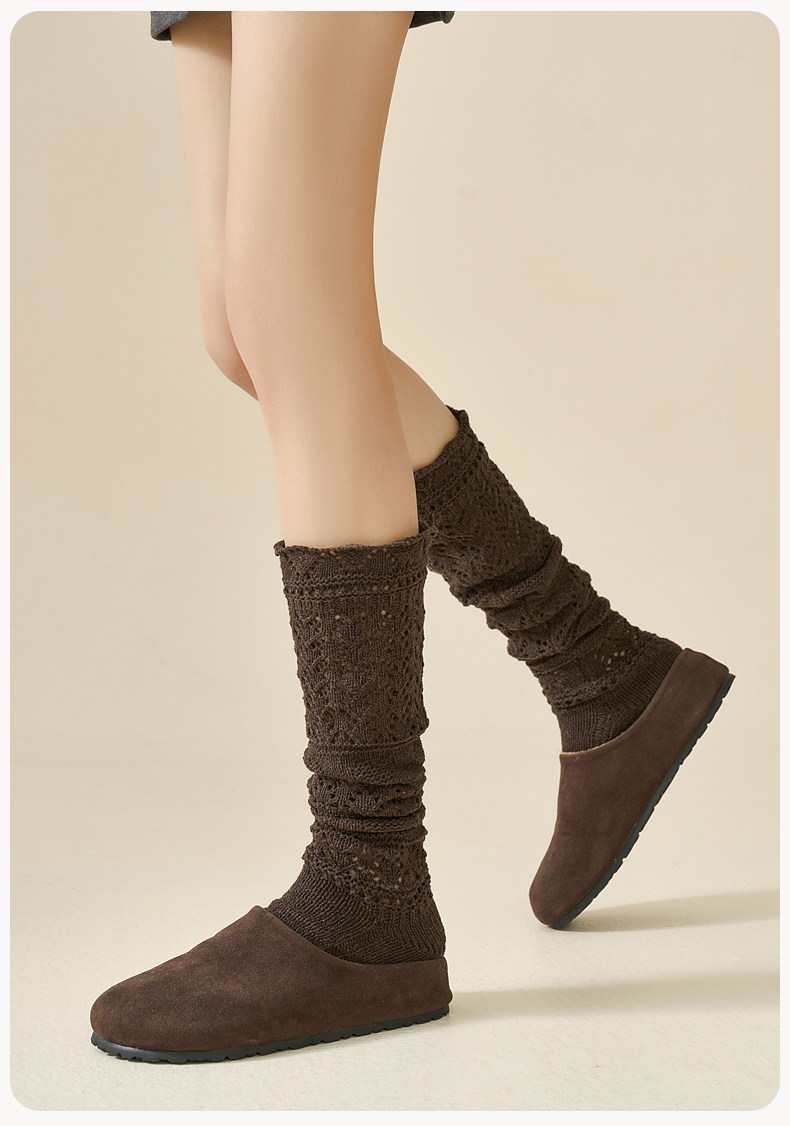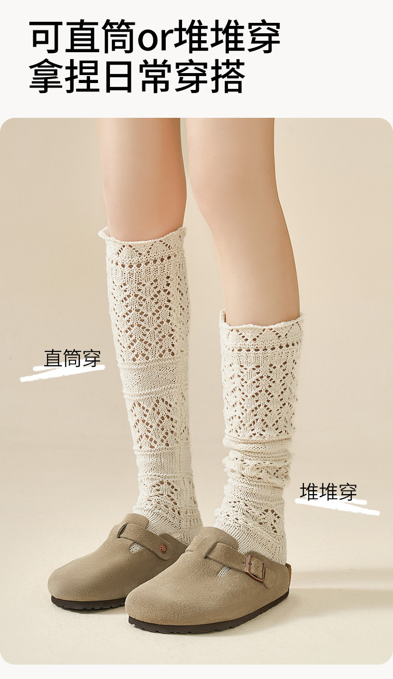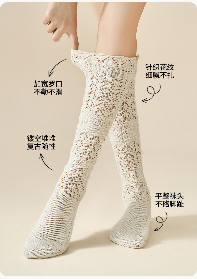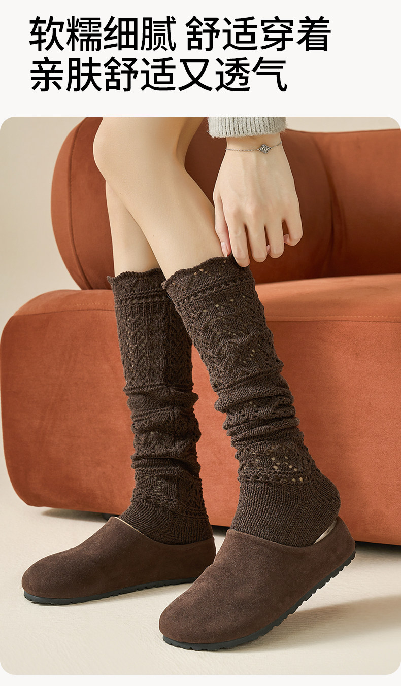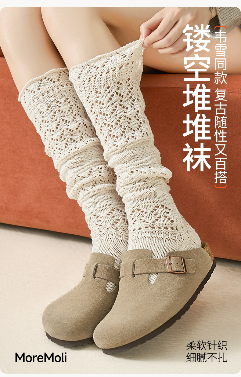 Weixue Style Wool Socks for Women, Autumn Hollow-Out Long Socks, 2025 New Popular Leg Warmers, Stacked Calf Socks