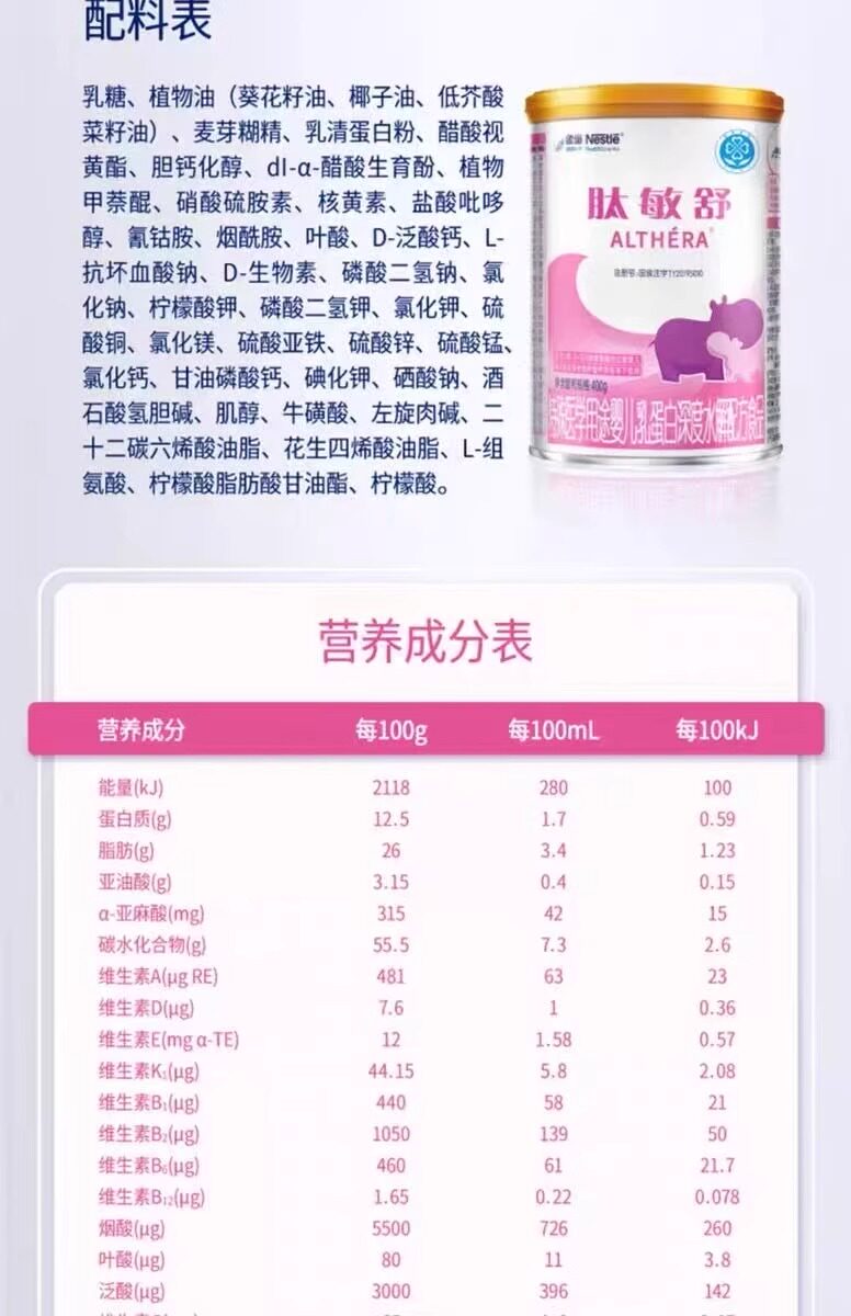 Peptide-Sensitive Nestlé Health Science Special Medical Purpose Infant Formula Deeply Hydrolyzed Milk Protein Formula 400g