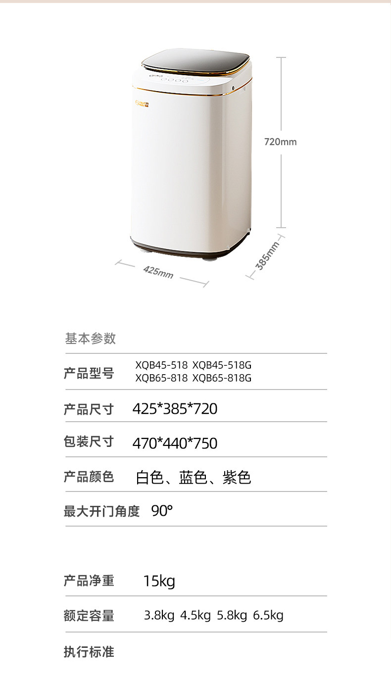 | Color Classification | 3.8kg Pearl White [Blu-Ray Cleaning + Elution in One],3.8kg Sky Blue [Blue Light Cleaning + Integrated Washing & Drying],4.5kg Pearl White [Blu-Ray Cleaning + Elution in One],4.5kg Sky Blue [Blue Light Clean + Elution in One],4.5kg Pearl White [Uv Disinfection & Mite Removal + Glass Damping],4.5kg Sky Blue [Uv Sterilization & Mite Removal + Glass Damping],4.5kg Pearl White [High Temperature Boiling + Deep Decontamination],4.5kg Sky Blue [High-Temperature Wash + Deep Stain Removal],5.8kg Pearl White [Blu-Ray Cleaning + Elution in One],5.8kg Sky Blue [Blue Light Cleaning + Integrated Washing & Drying],5.8kg Pearl White [Uv Disinfection and Mite Removal + Glass Damping],5.8kg Sky Blue [Uv Sterilization & Mite Removal + Glass Damping],5.8kg Pearl White [High Temperature Boiling + Deep Decontamination],5.8kg Sky Blue [High-Temperature Wash + Deep Stain Removal] |