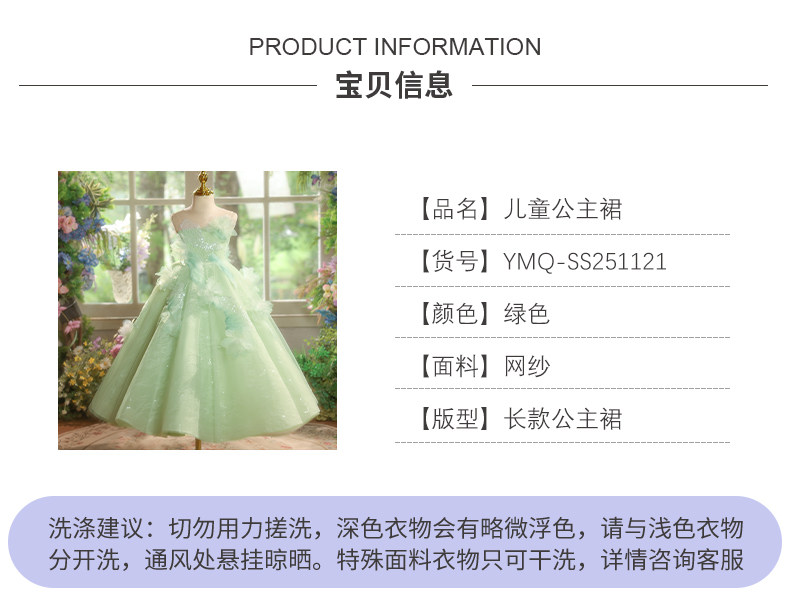 Yinmanqi Children's Dress 2025 New Model Girls' Piano Performance Birthday Forest Style Princess Dress Little Host Evening Dress