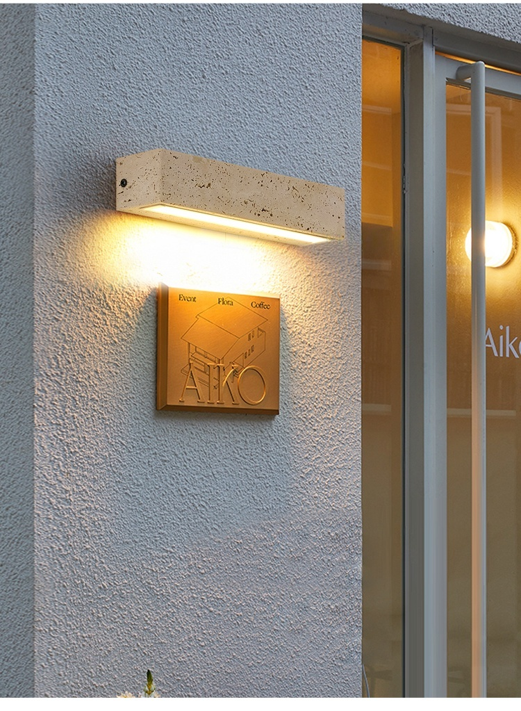 Vintage Wabi-Sabi Style Outdoor Yellow Travertine Villa Courtyard Balcony Waterproof Bedroom Bedside Entrance Door Wall Lamp
