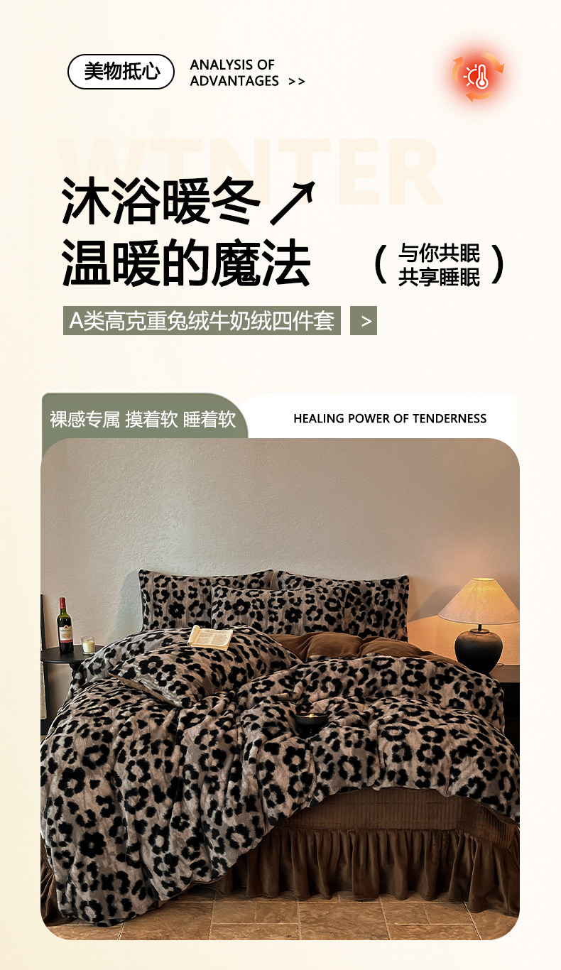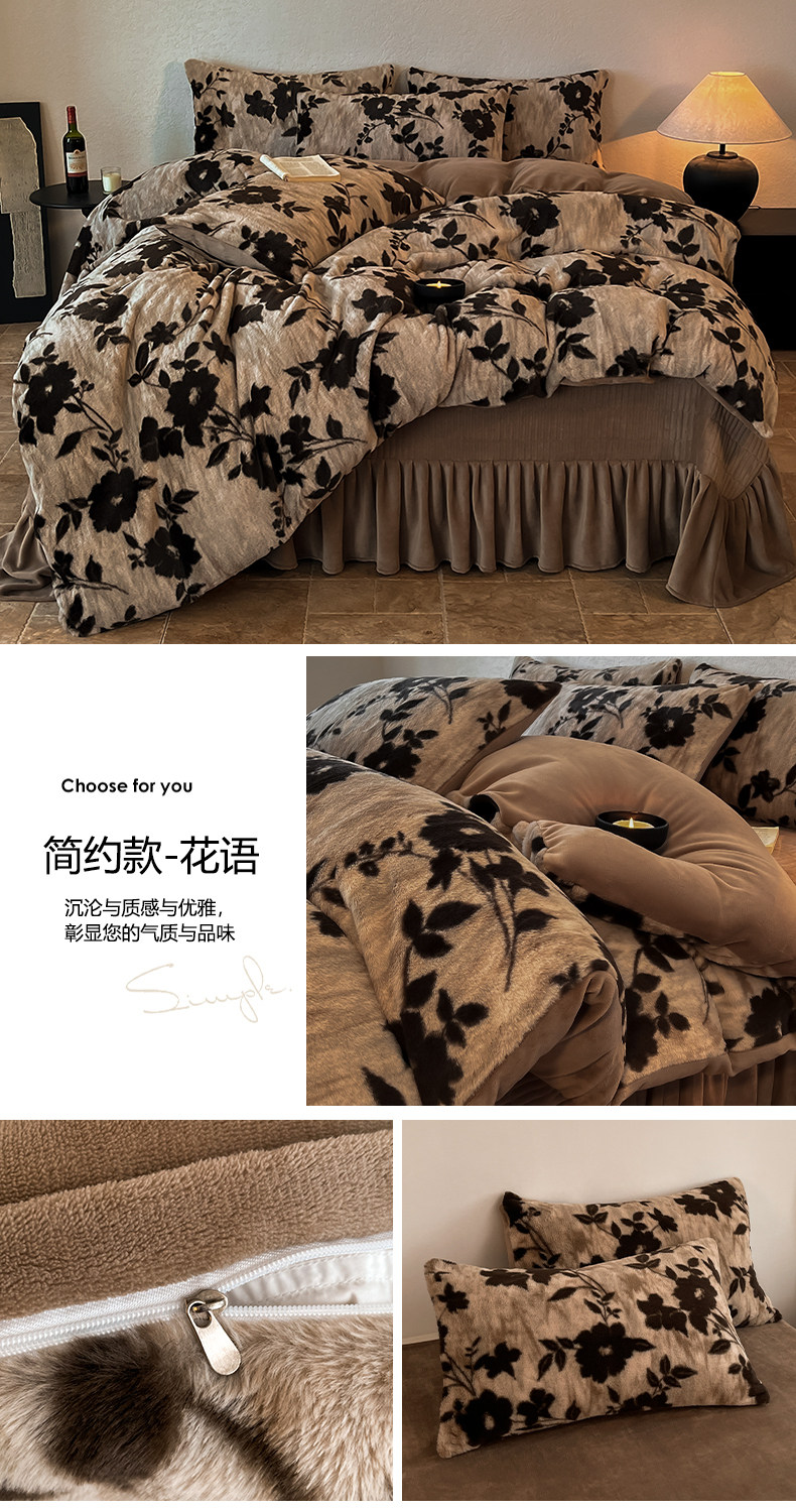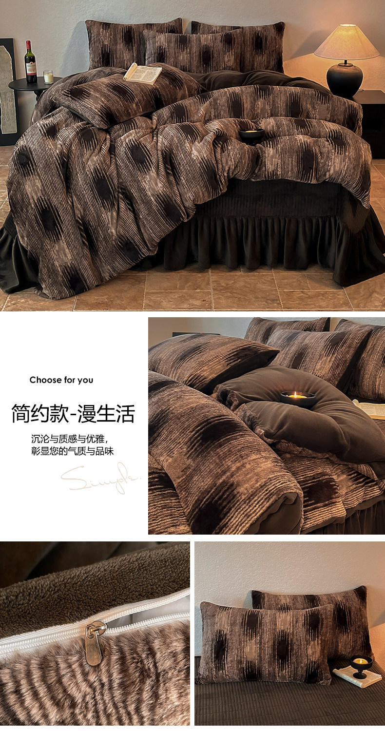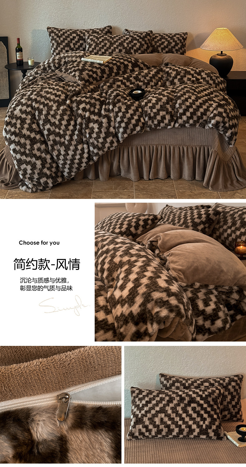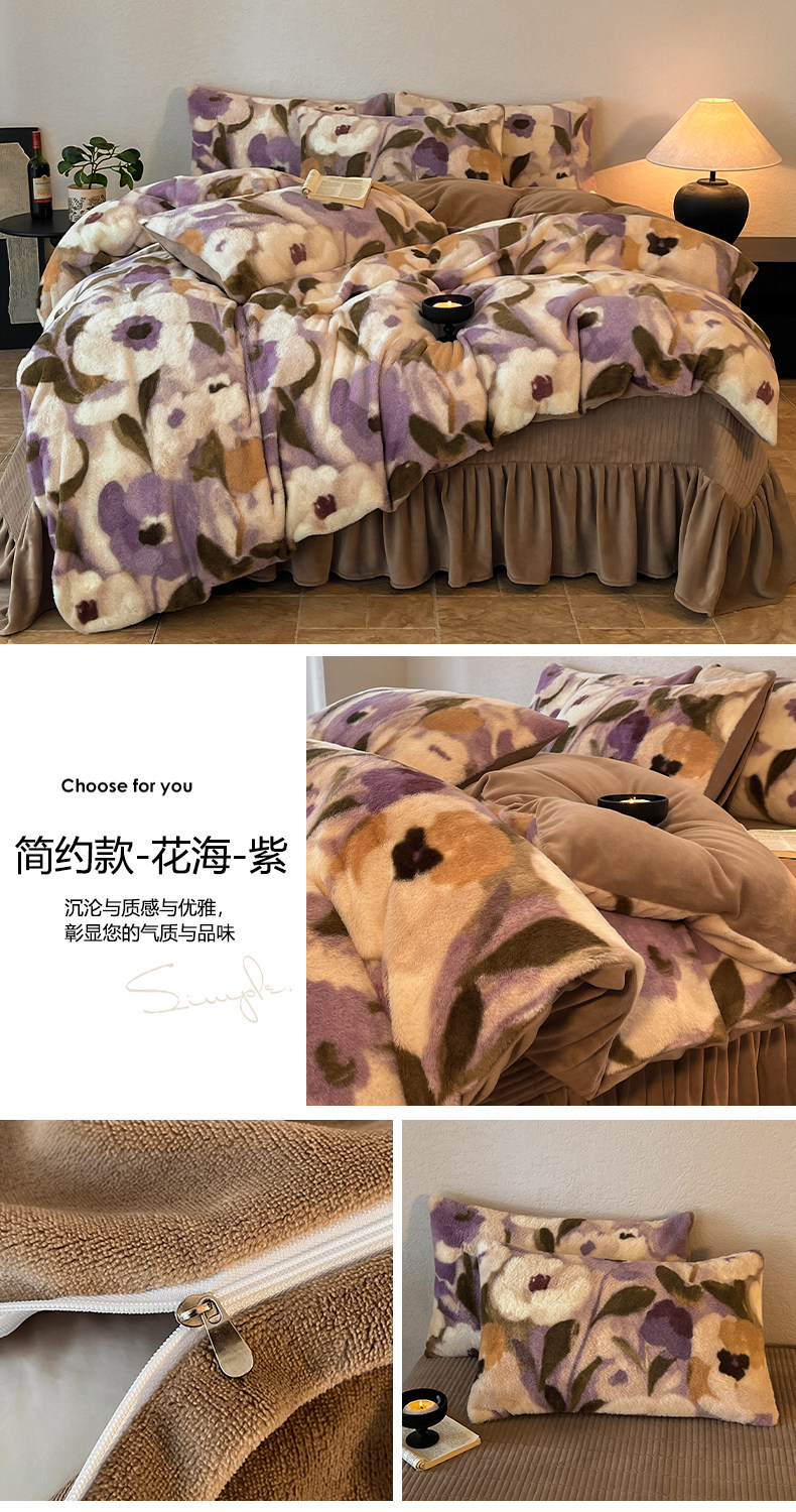 2026 New Winter Warm and Thickened Rabbit Fur Bedding Milk Velvet Bed Sheet Duvet Cover Bedspread Four-Piece Set