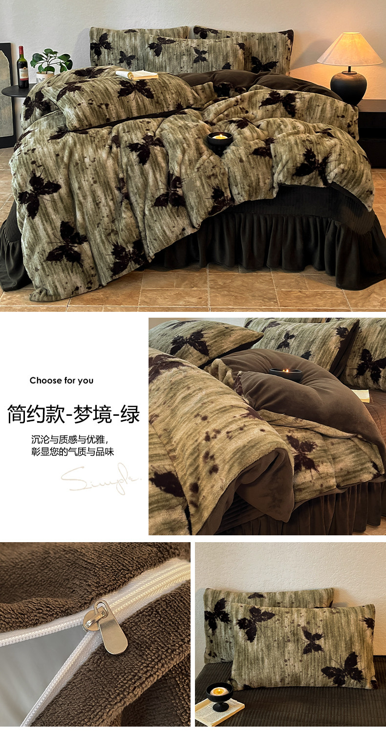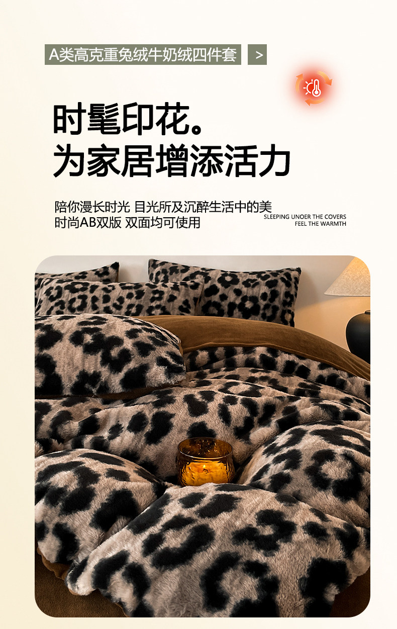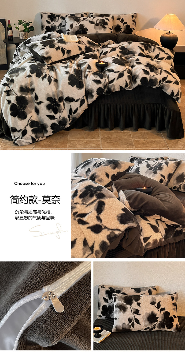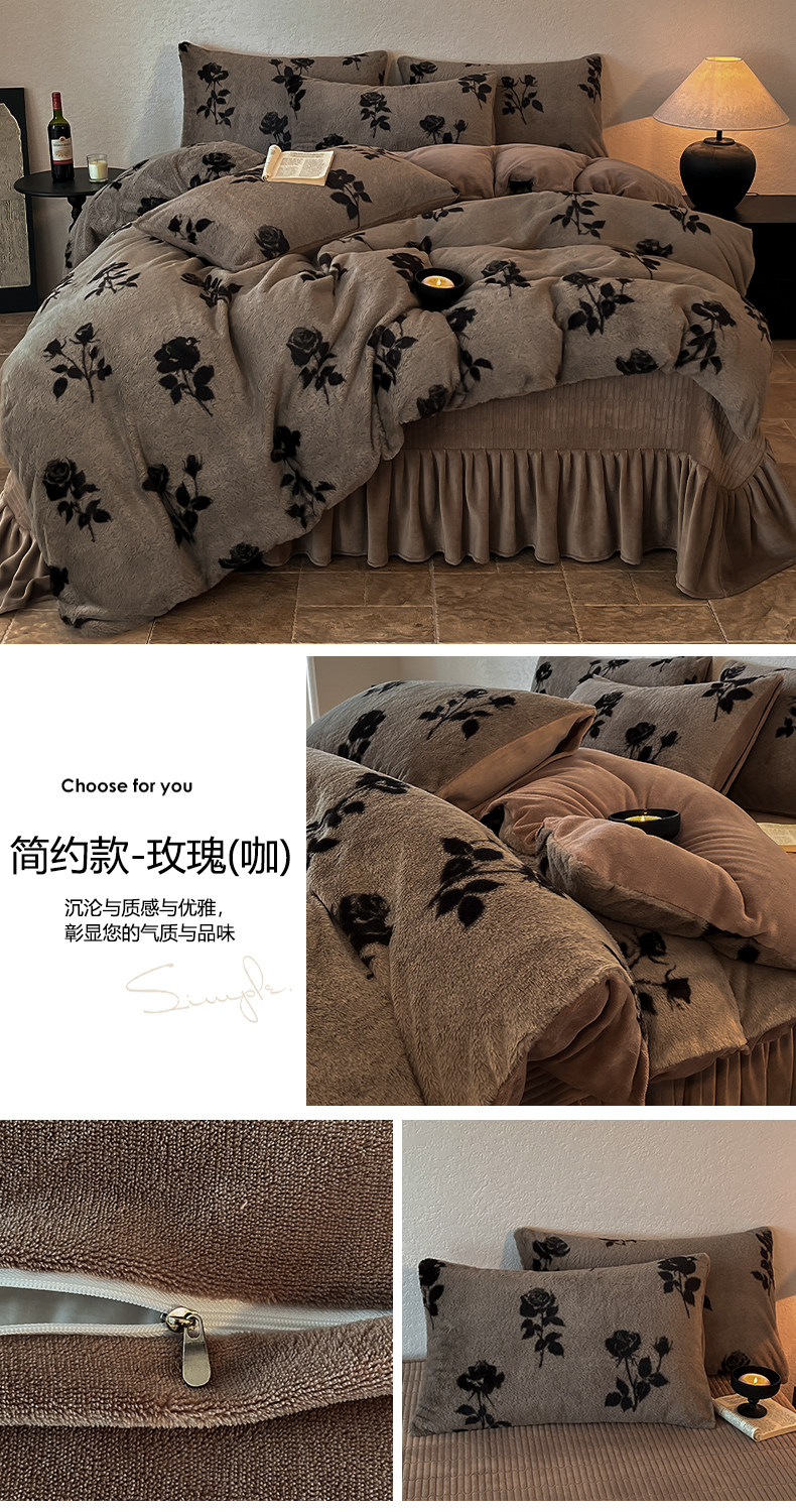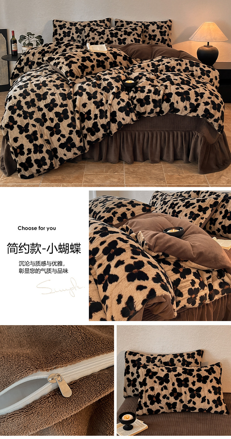 2026 New Winter Warm and Thickened Rabbit Fur Bedding Milk Velvet Bed Sheet Duvet Cover Bedspread Four-Piece Set
