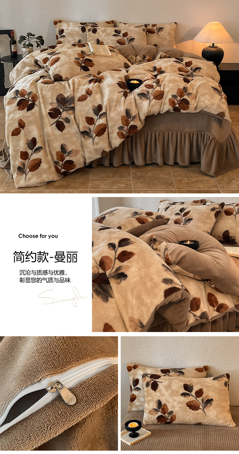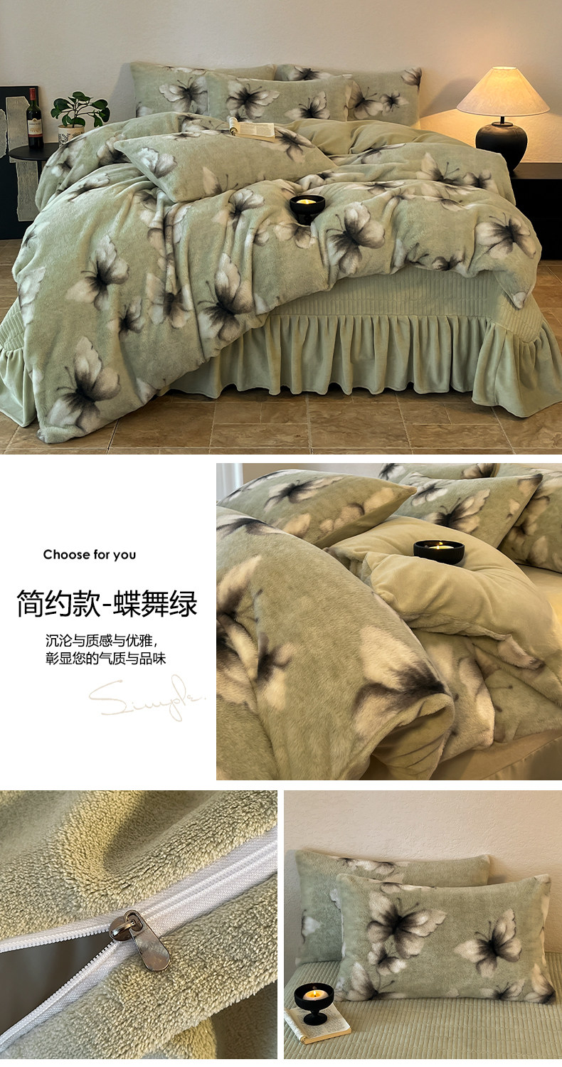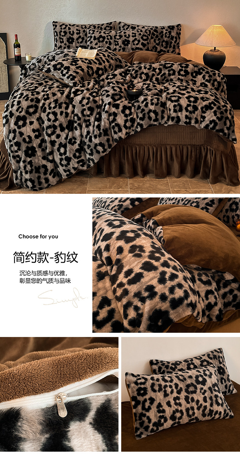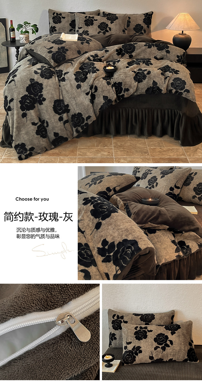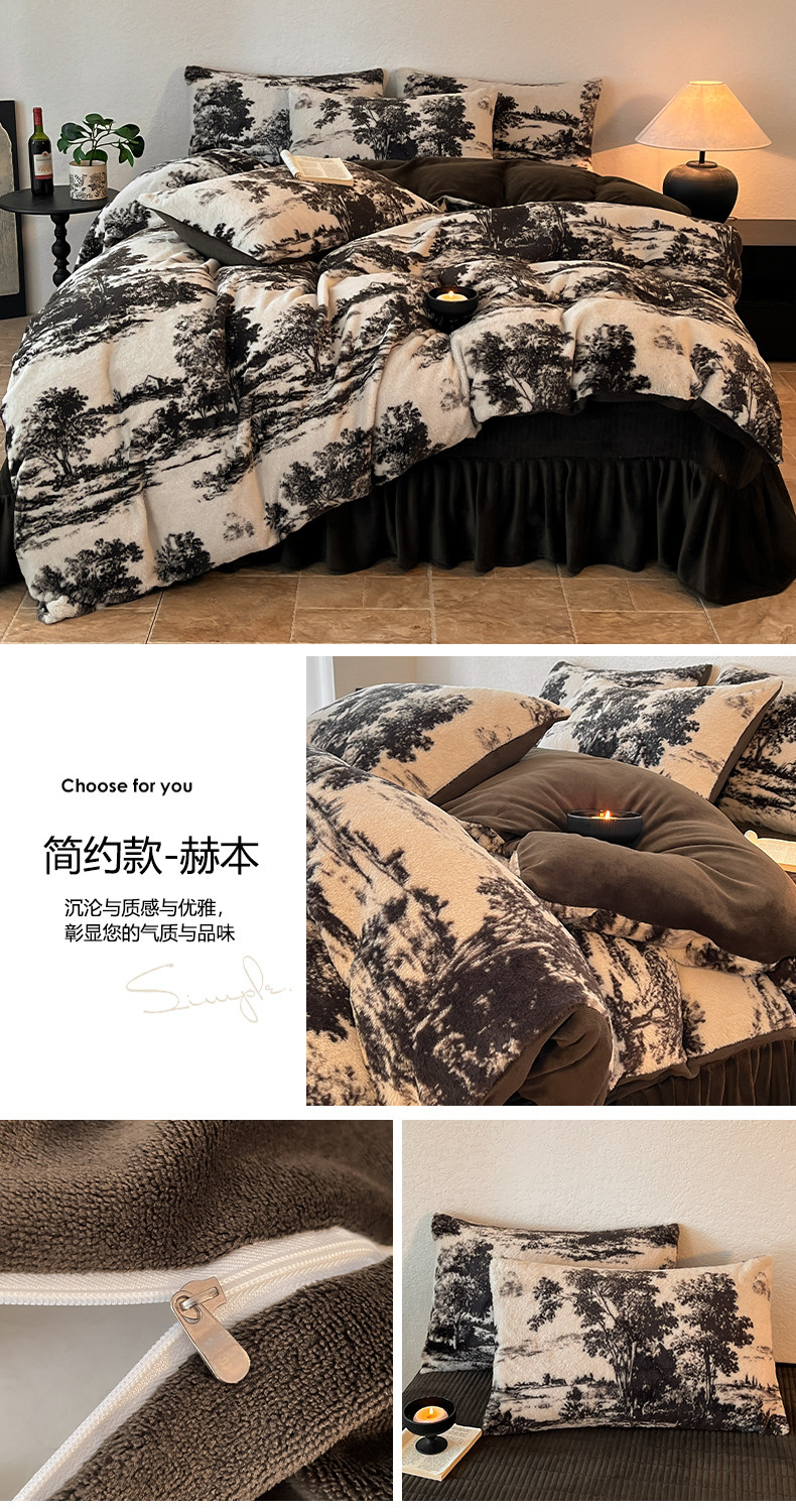 2026 New Winter Warm and Thickened Rabbit Fur Bedding Milk Velvet Bed Sheet Duvet Cover Bedspread Four-Piece Set