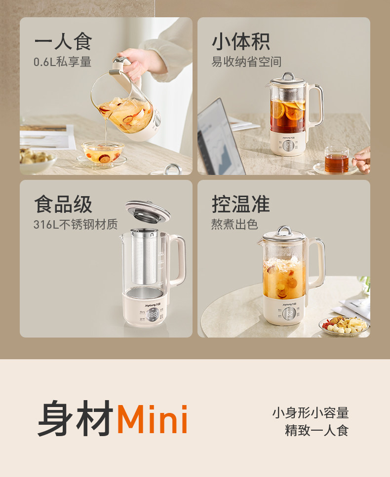 Joyoung Health Pot, Small Size for One Person, Mini Integrated Stewing and Tea Brewing Kettle, Official Flagship Store Genuine Product