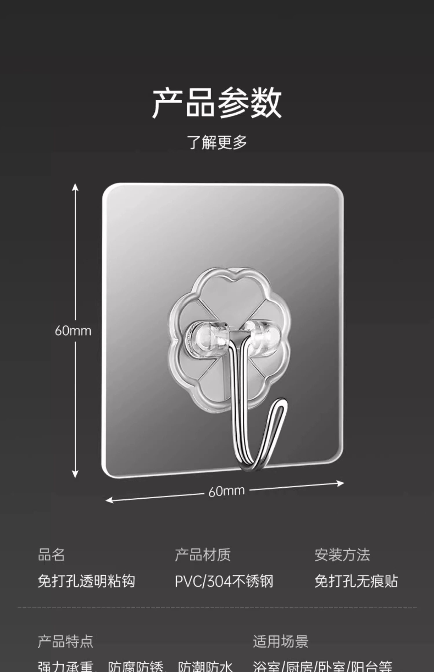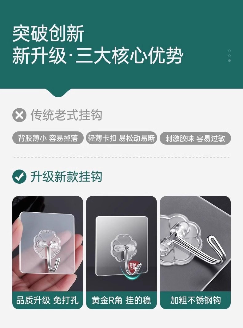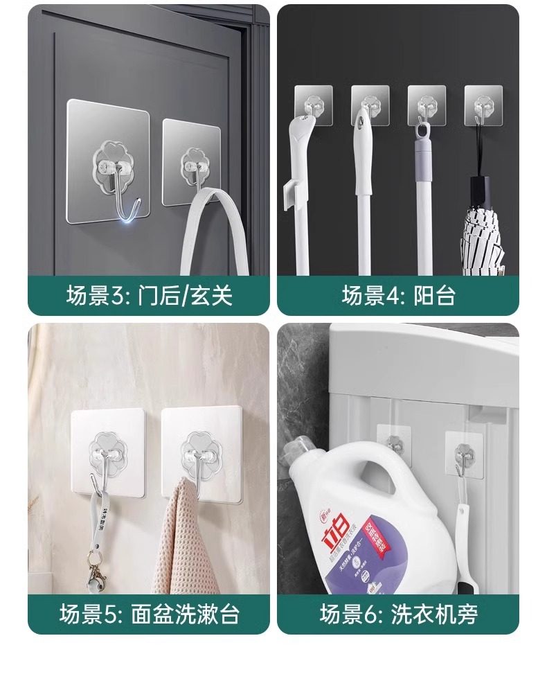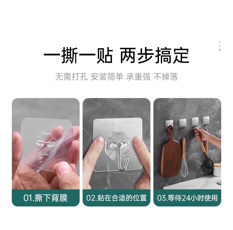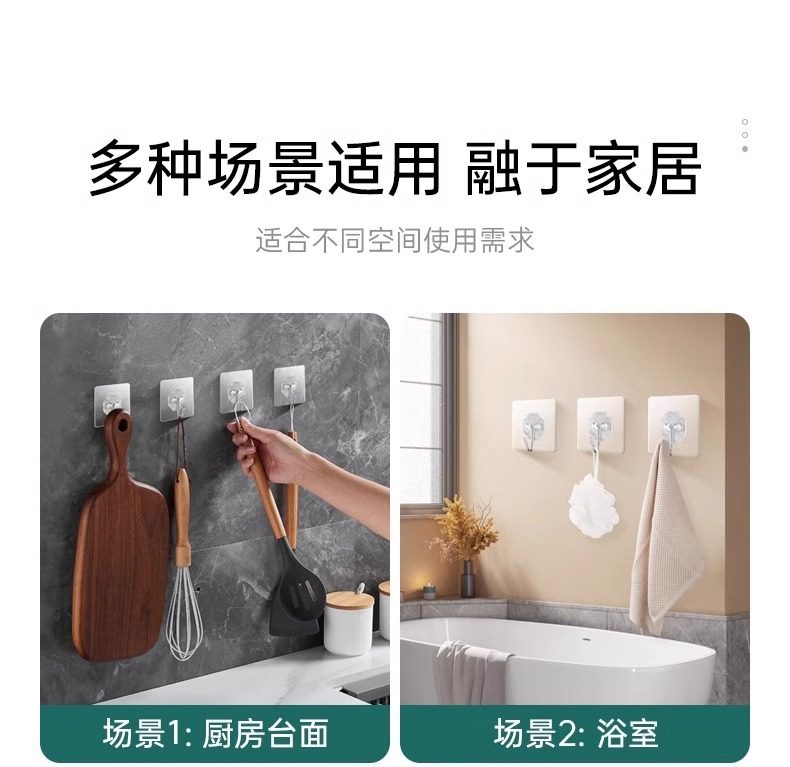 60 Adhesive Hooks with Strong Adhesive for Wall Hanging, Heavy-Duty Suction Cup Kitchen Hooks, Traceless Adhesive, No Drilling Required for Door Installation