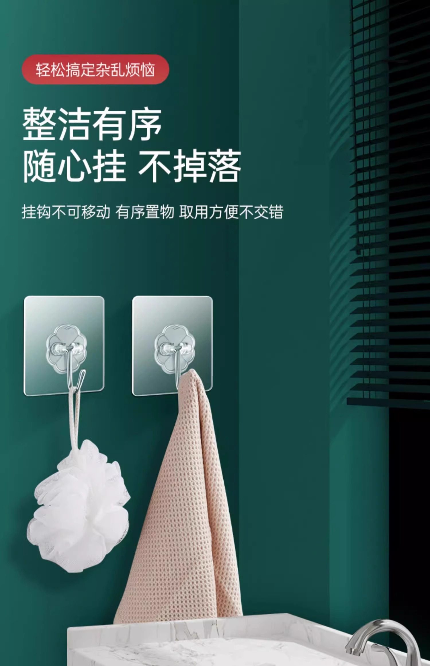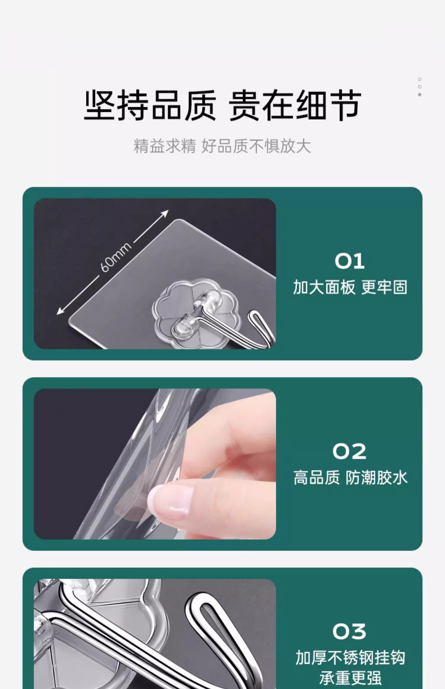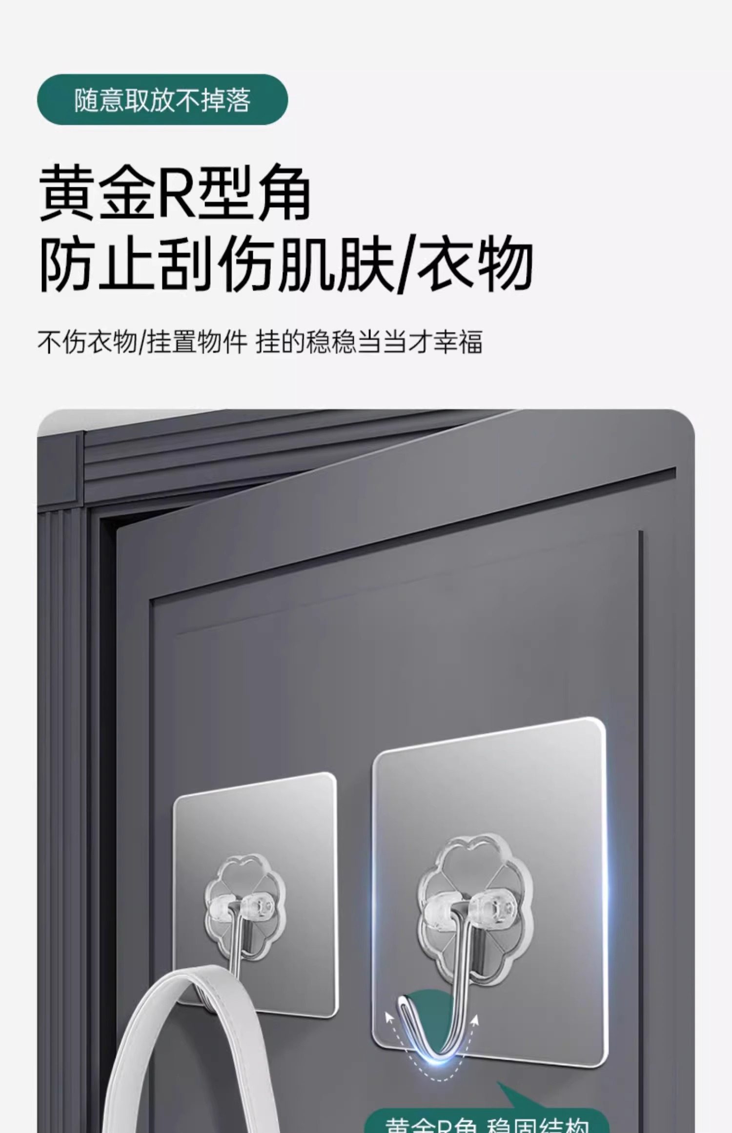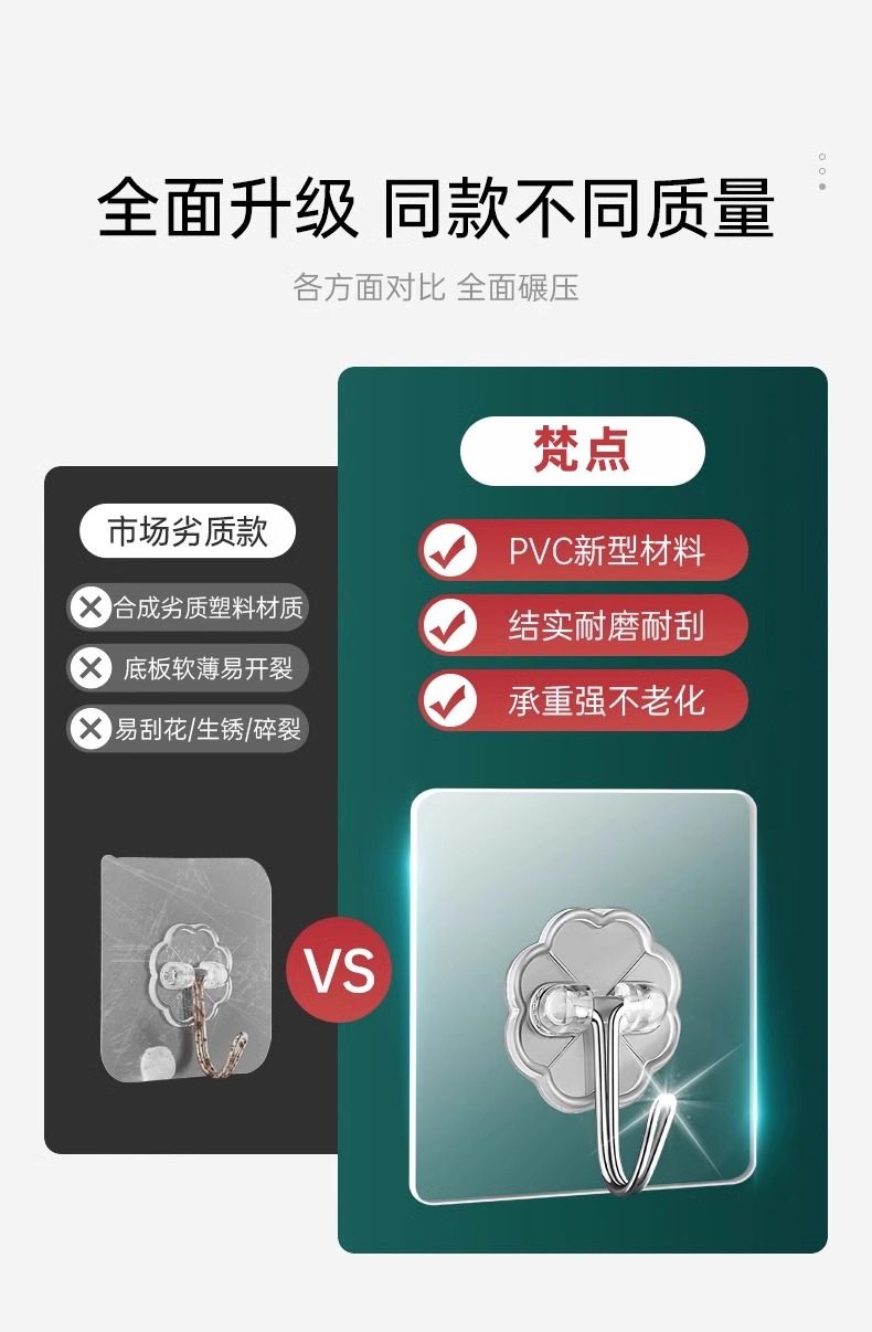 60 Adhesive Hooks with Strong Adhesive for Wall Hanging, Heavy-Duty Suction Cup Kitchen Hooks, Traceless Adhesive, No Drilling Required for Door Installation