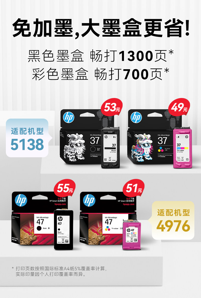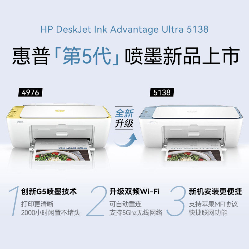 | Color Classification | Hp 5138 [Black 1300 Pages + Color 700 Pages + Dual-Band Wifi, Mobile Phone + Computer + Remote + Learning Resources],Hp 4976 [Black 1300 Pages + Color 700 Pages + Wireless Wifi, Mobile Phone + Computer + Remote + Learning Resources],Hp 5138,5138 Bundle One: [Extra: 1 Black Ink Cartridge + 1 Color Ink Cartridge],5138 Bundle Two [Extra: 1 Black Ink Cartridge + 2 Color Ink Cartridges] |