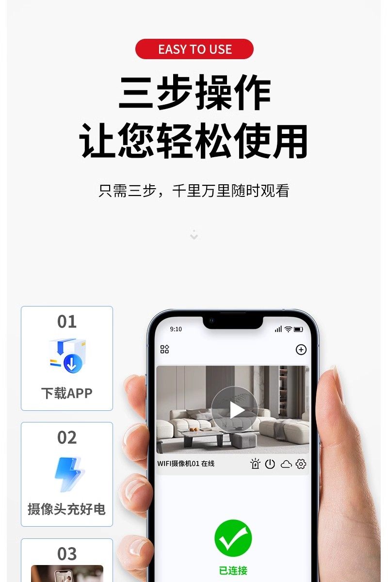 Camera Without Power Plug, Wireless Home Mobile Phone Remote Monitor, No Network Required, Indoor High-Definition Smart Camera