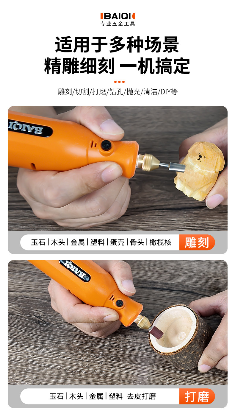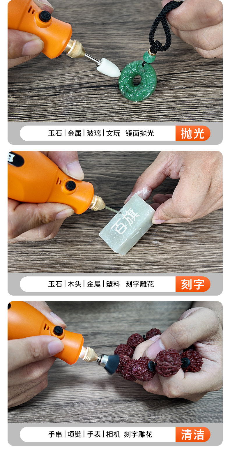 Handheld Electric Grinder Drill Jade Carving Wireless Lithium Battery Rechargeable Polishing Pen Peach Pit Grinding Tool Small