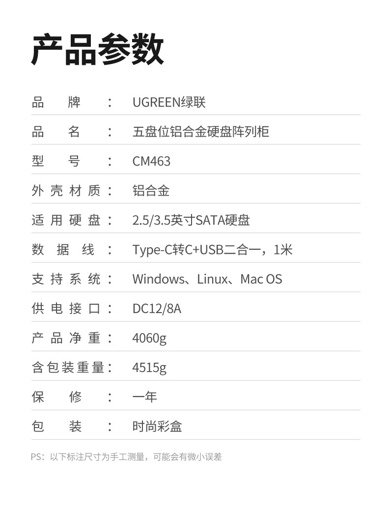 | Color Classification | [Basic Model with Aluminum Shell] Without Raidâ Temperature Controlled Fan Coolingâ 120Tb Expansionâ 2.5/ 3.5inch Universal,[Advanced Aluminum Shell Model] 8 Types of Raidâ Temperature Controlled Fan Coolingâ 120Tb Expansionâ 2.5/ 3.5inch Universal,[Basic Model with Plastic Shell] Without Raidâ Dual Fans for Strong Heat Dissipationâ 120Tb Expansionâ 2.5/ 3.5inch Universal,[Advanced Plastic Shell Model] 8 Types of Raidâ Dual Fans for Strong Heat Dissipationâ 120Tb Expansionâ 2.5/ 3.5inch Universal,[High-End Aluminum Shell Model] 8 Types of Raidâ Dual Fans for Strong Heat Dissipationâ 120Tb Expansionâ 2.5/ 3.5inch Universal,[High-End Model with Double-Disk Aluminum Shell] 4 Types of Raid â Single Fan Strong Heat Dissipation â 48Tb Expansion â 2.5/ 3.5inch |